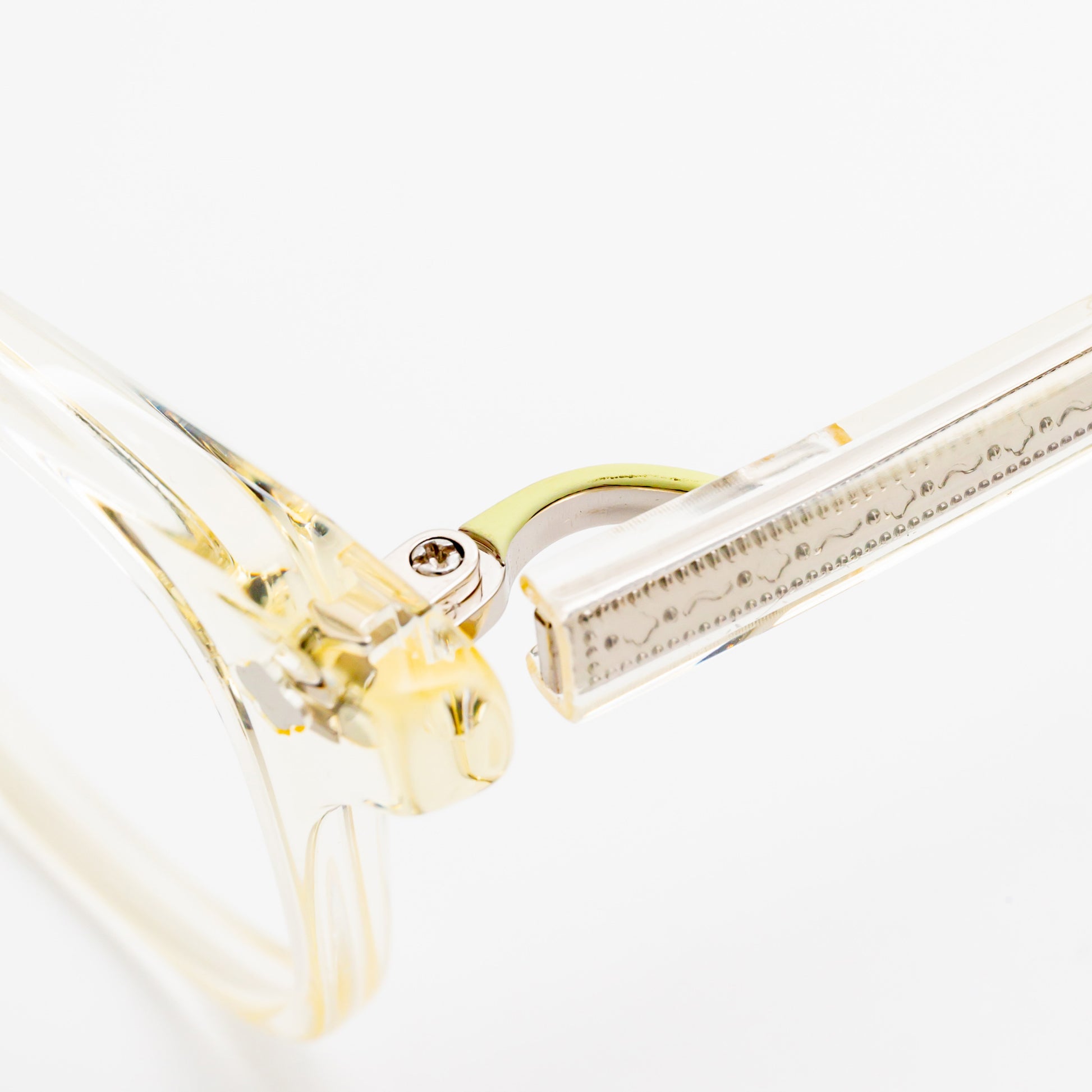 伏し目や上目づかいの時に丁番の七宝がアクセントになる、あざとかわいい メガネです。うつむくと見えるあざとかわいいカラフルな七宝が特徴です!