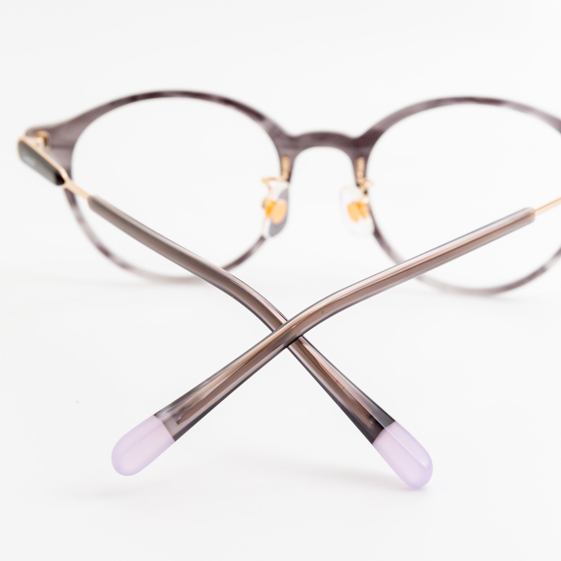 テンプルのアセテートパーツをフロントとリンクしたカラーにし、統一感を演出。モダン先のカラー切り替えもさりげないアクセントになっています。