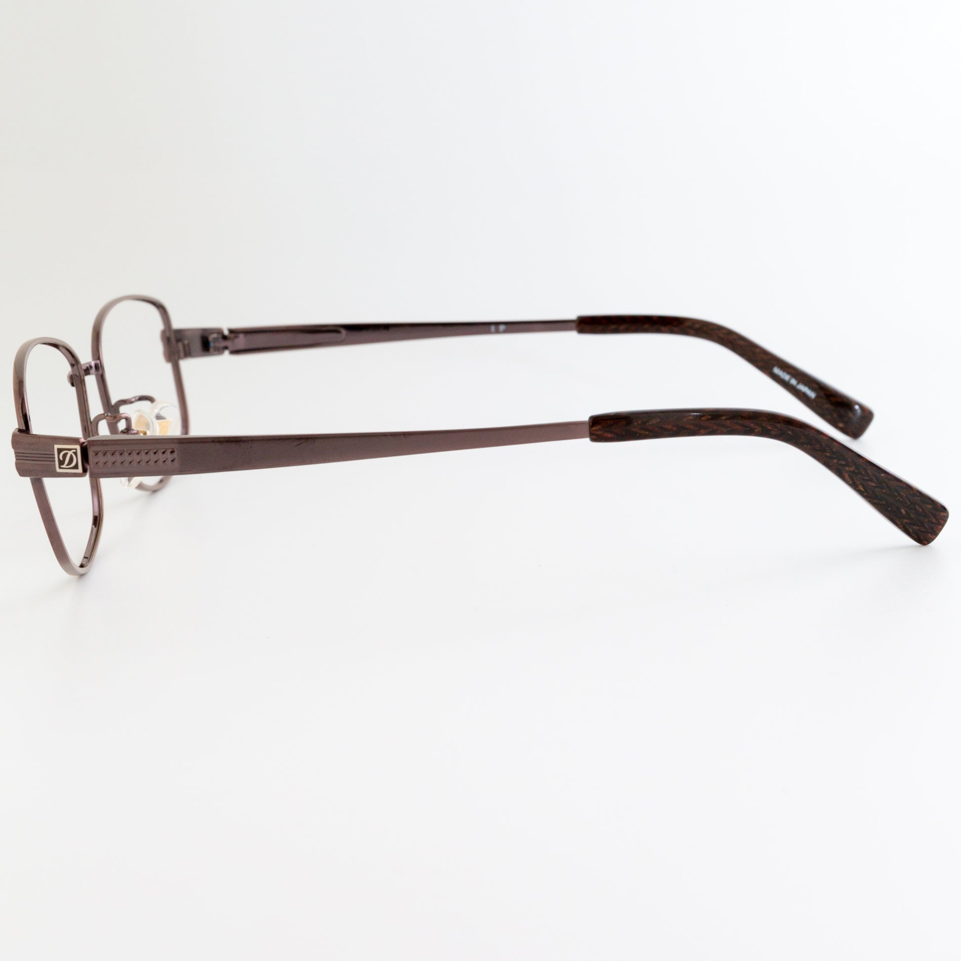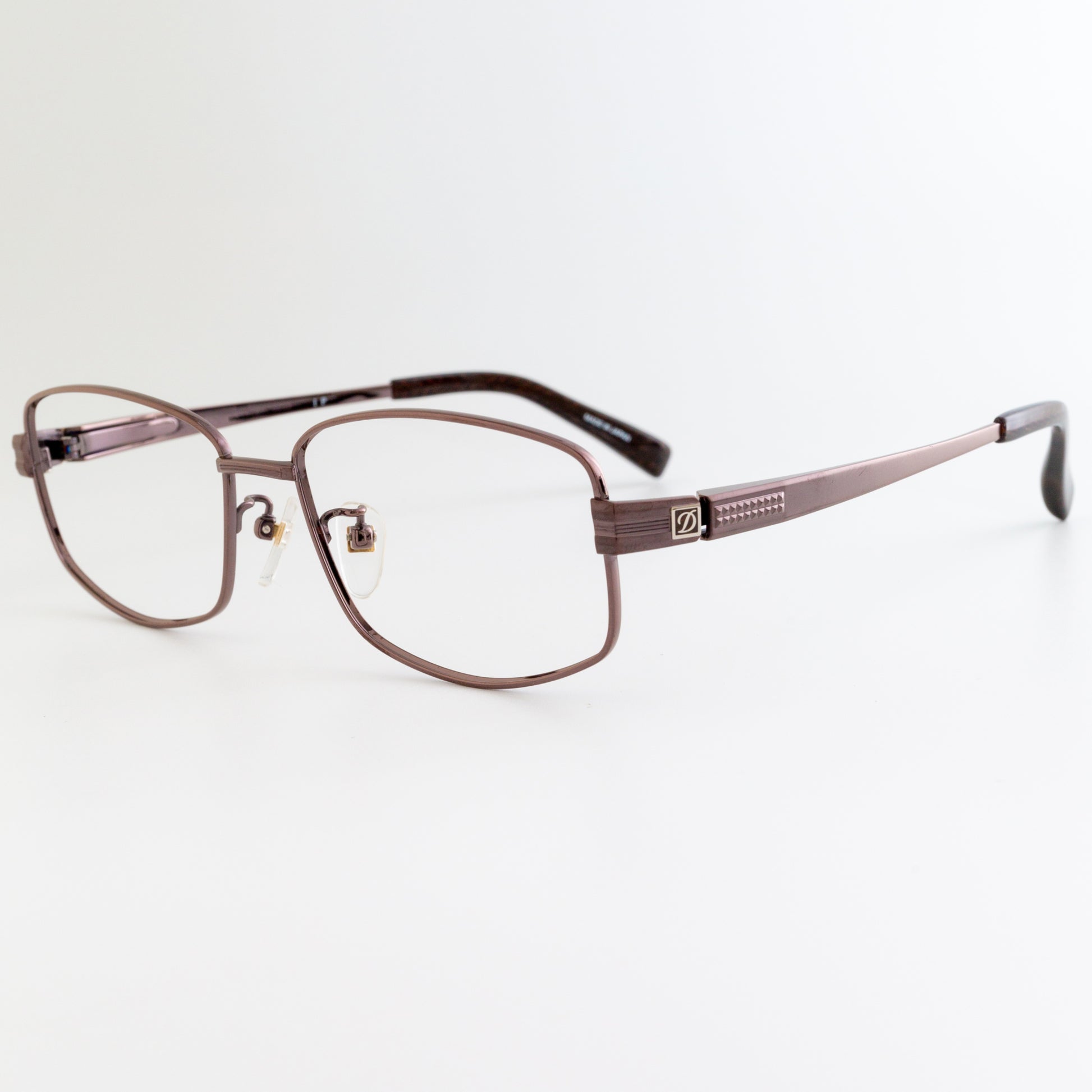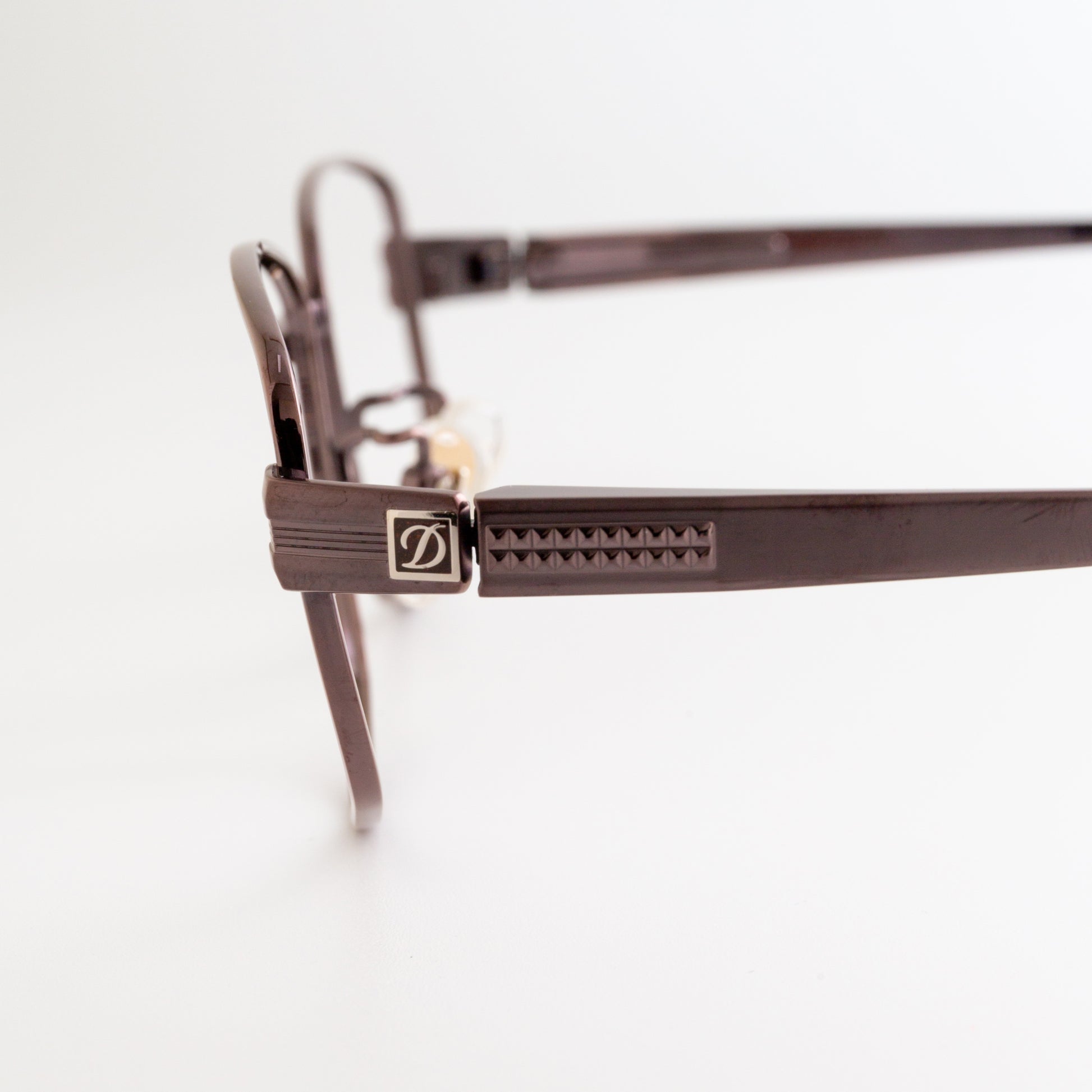 「ライター派生の立体的デザイン。」エス・テー・デュポンによる男性用アイウェア。ライター模様から派生した立体的なデザインが、高級感溢れる独特の表情を醸し出す。チタン素材の採用や、七宝樹脂による研ぎ出し(とぎだし)を施したテンプルなど、エス・テー・デュポンならではのクオリティで表現する。