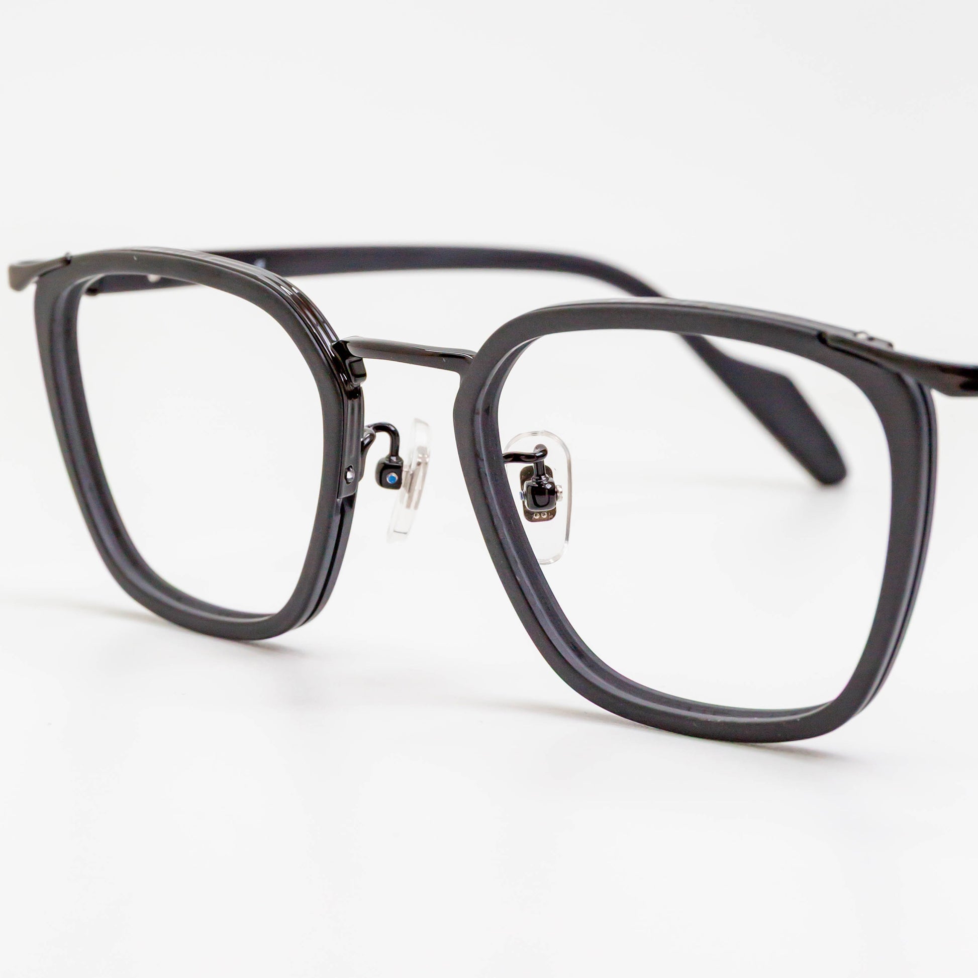 フロントを走るトップバーとメタルリムが織り、コンビネーションが直線的でありながら奥行きの表情を演出。