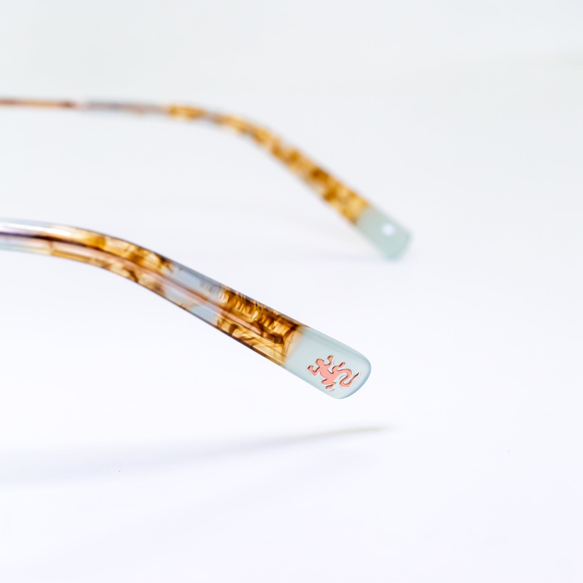 ややマニッシュな印象のキーホールと特徴的なブローラインで調和の取れた仕上がりに。