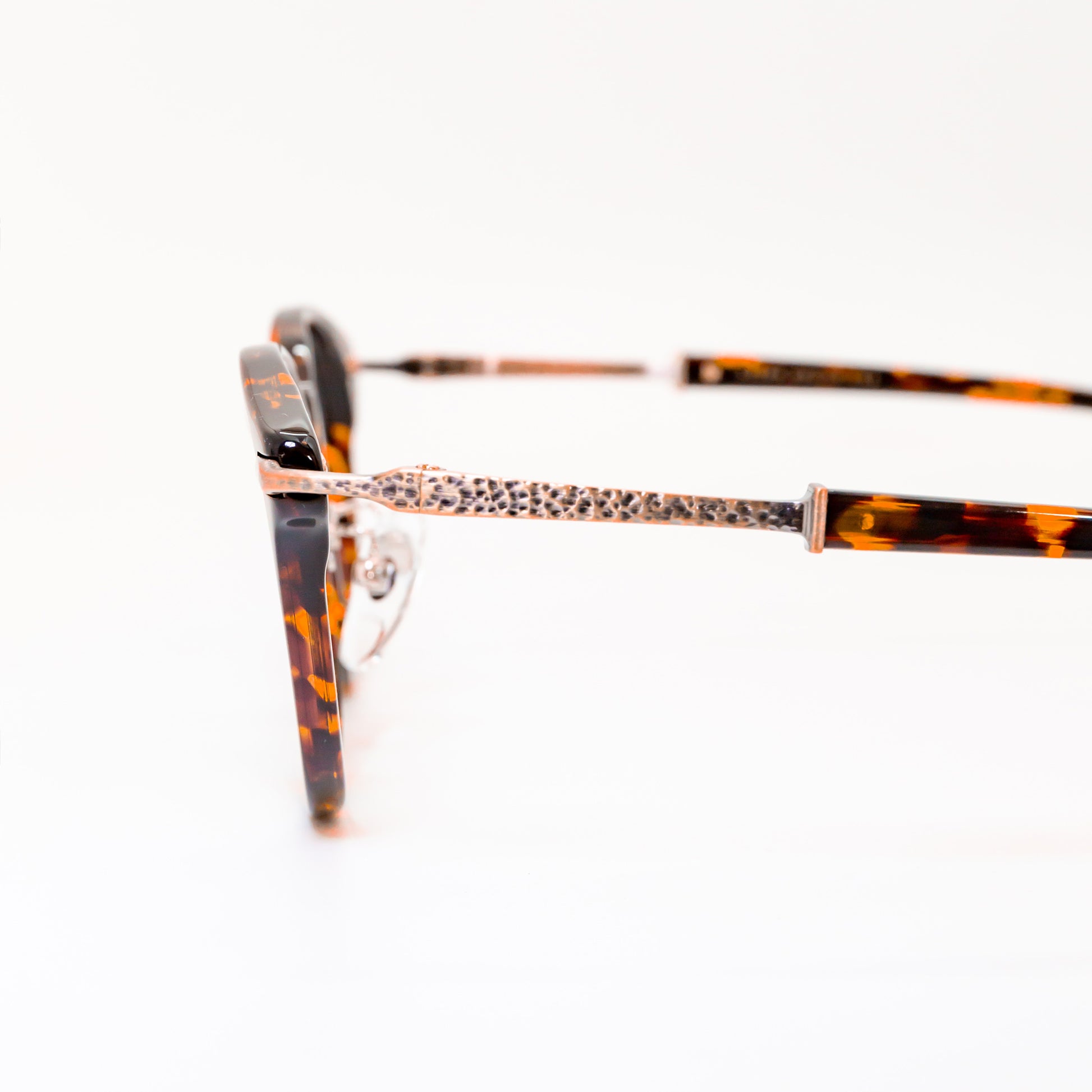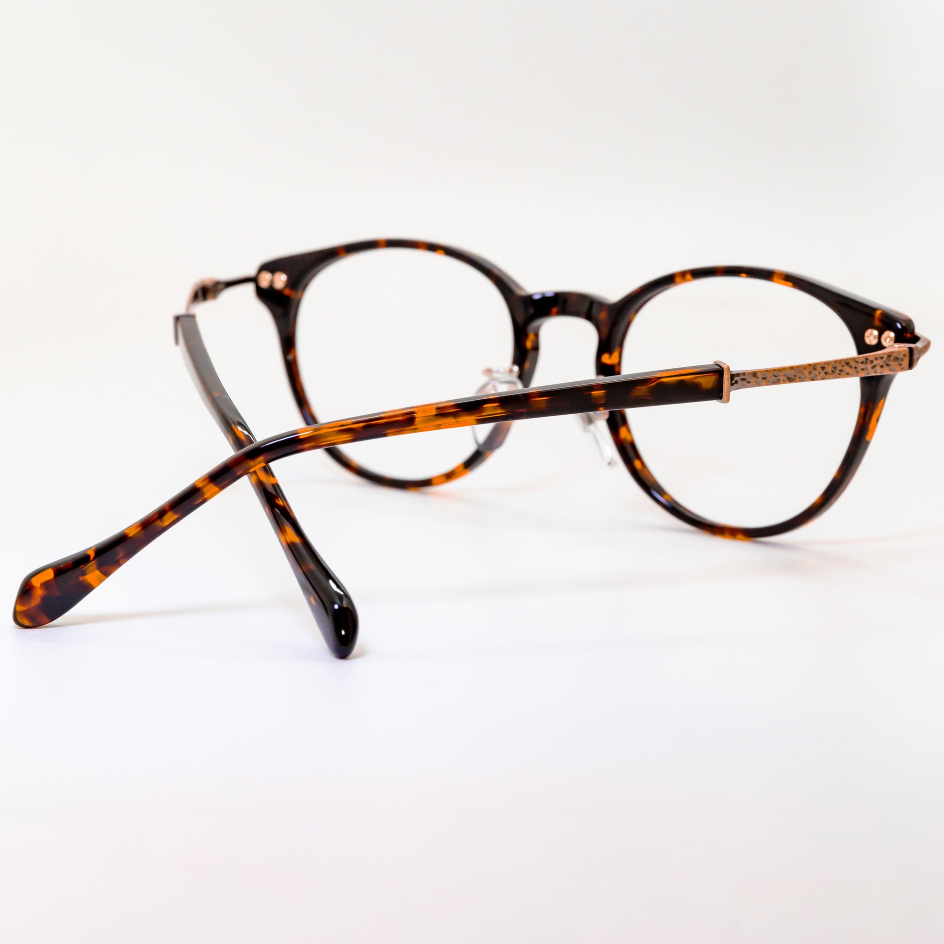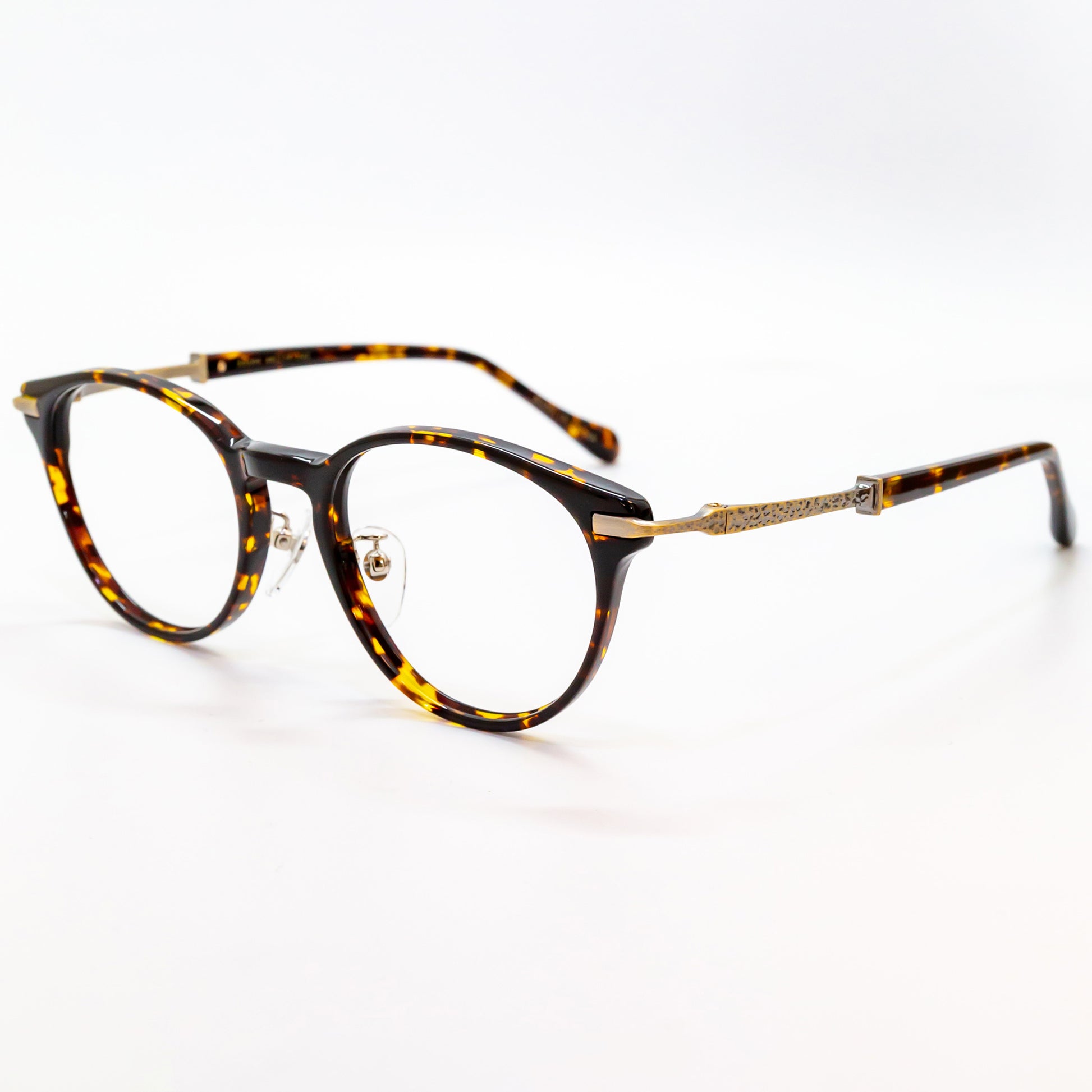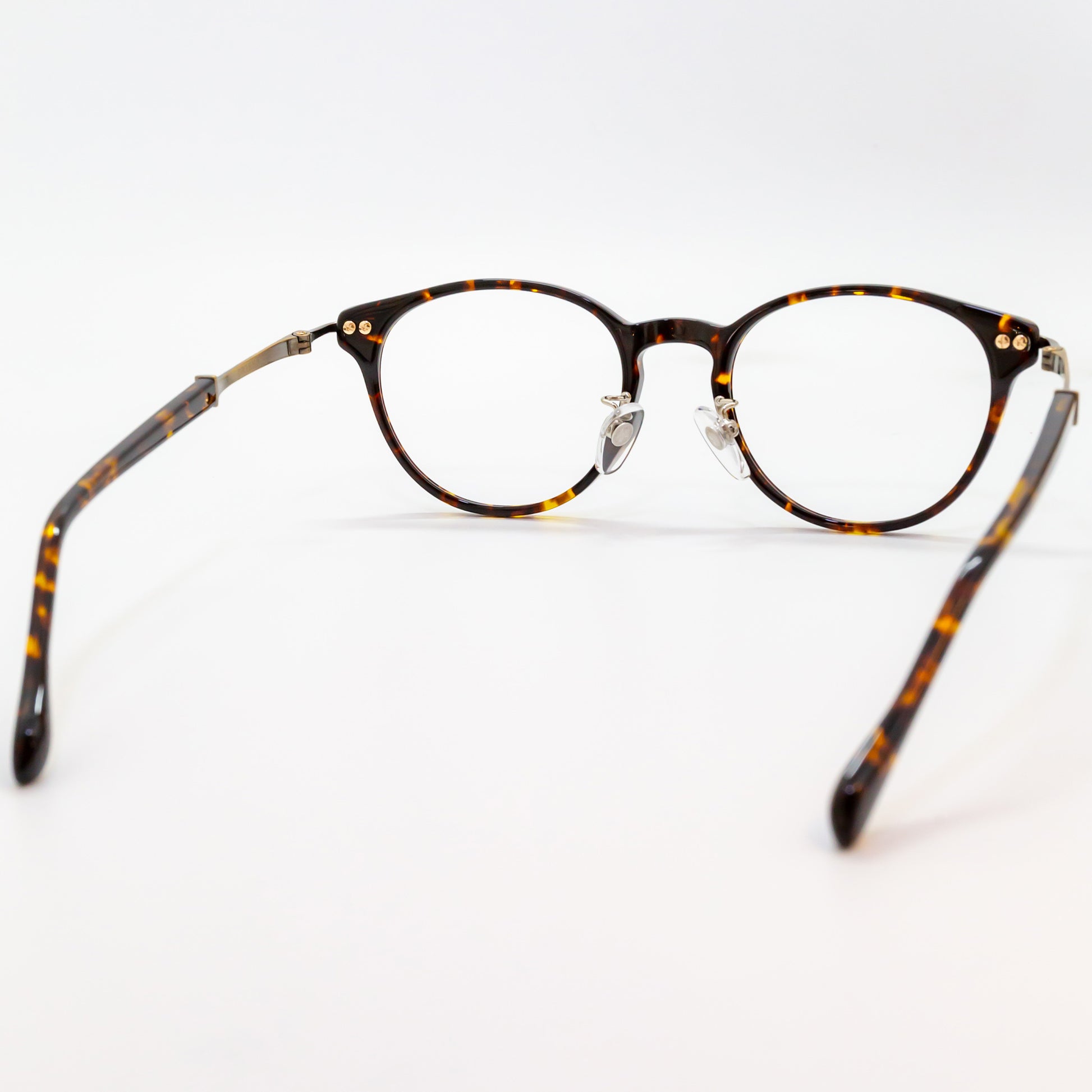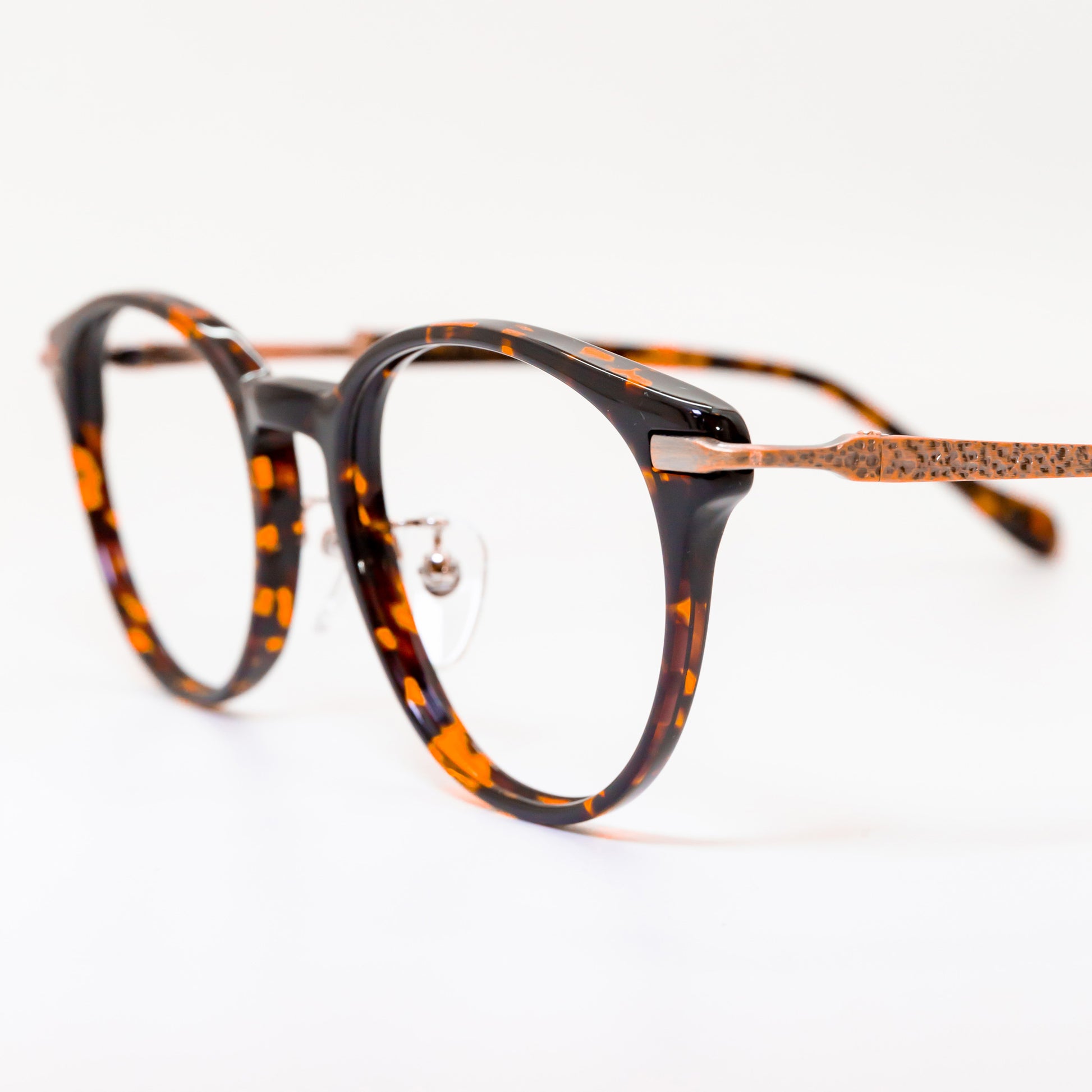 アセテートのフロントにメタルのテンプルを 組み合わせた、軽量コンビネーションタイプ。