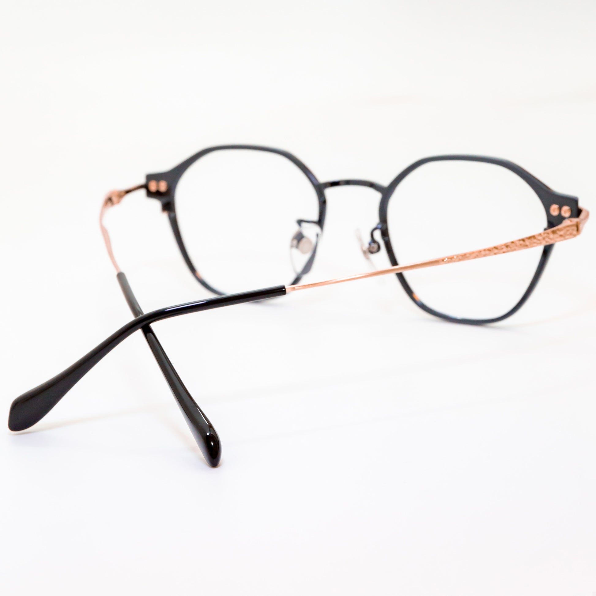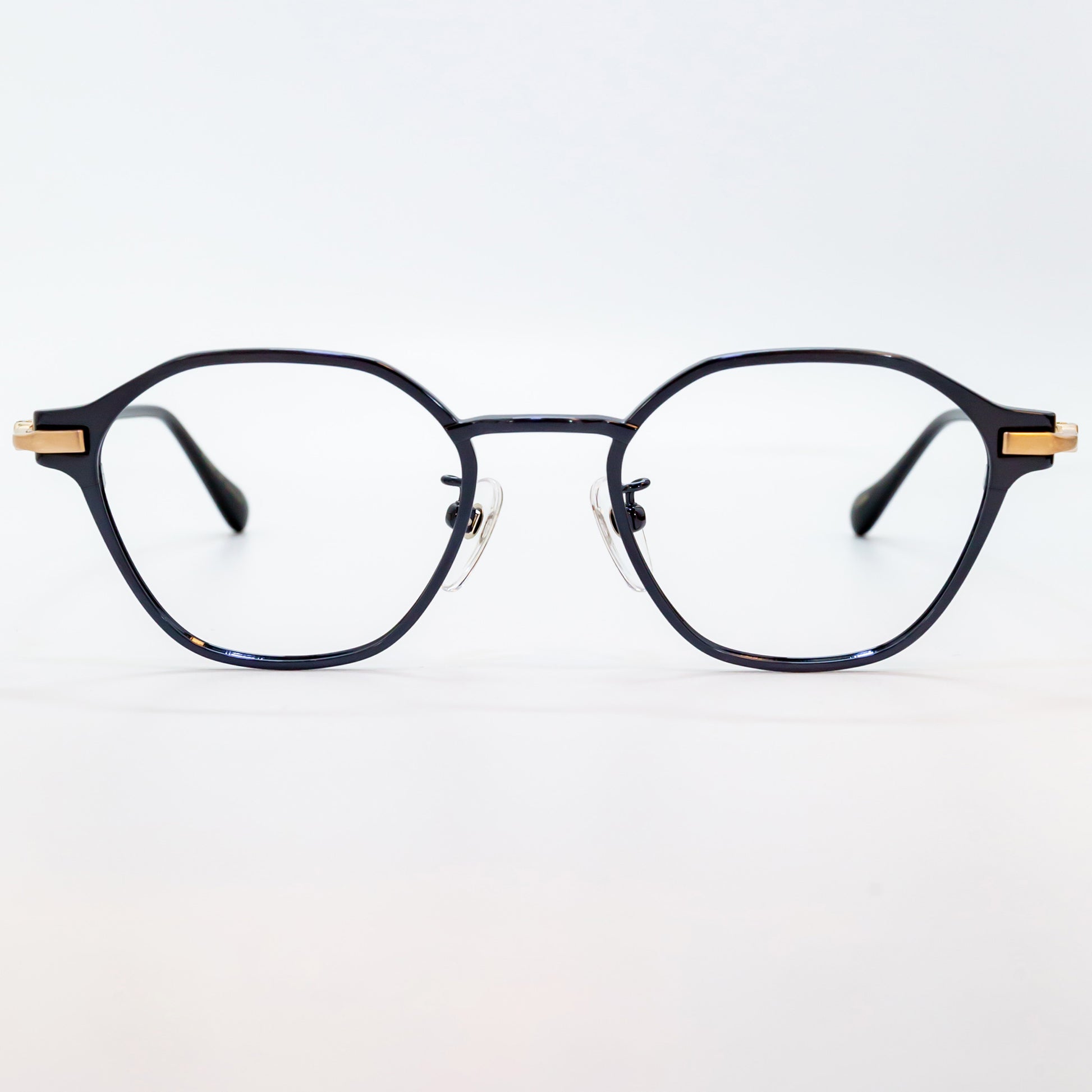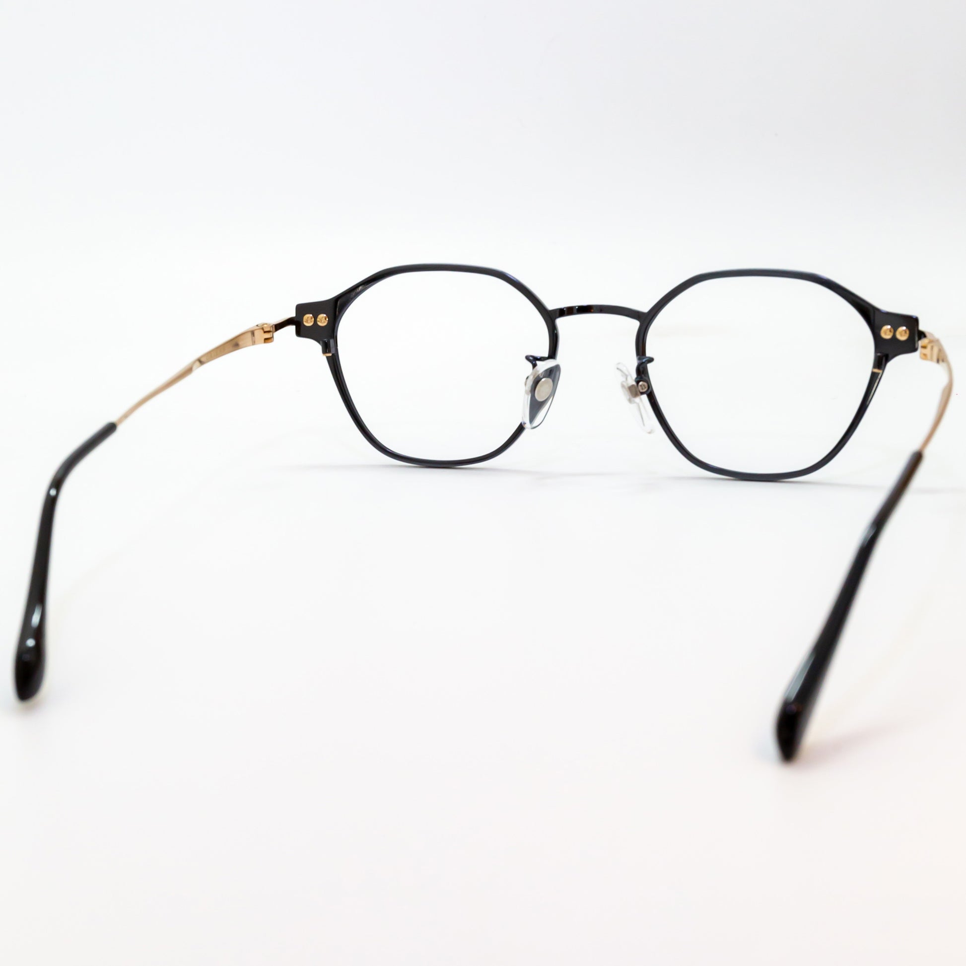 また、鼻パッド芯にはオリエント眼鏡社長の梅田家の家紋「加賀梅鉢紋」を採用し、日本文化と伝統を取り入れた象徴的なデザインを施しています。S2201モデルでは、チタンフルリム仕様によりレンズの厚みを隠し、重たい印象をスマートに見せる設計が採用されています。一方、S2202・S2203モデルでは、冷間一体プレス方式により溶接箇所を最小限に抑えた強固な構造を実現。見た目の美しさだけでなく、耐久性にも優れています。