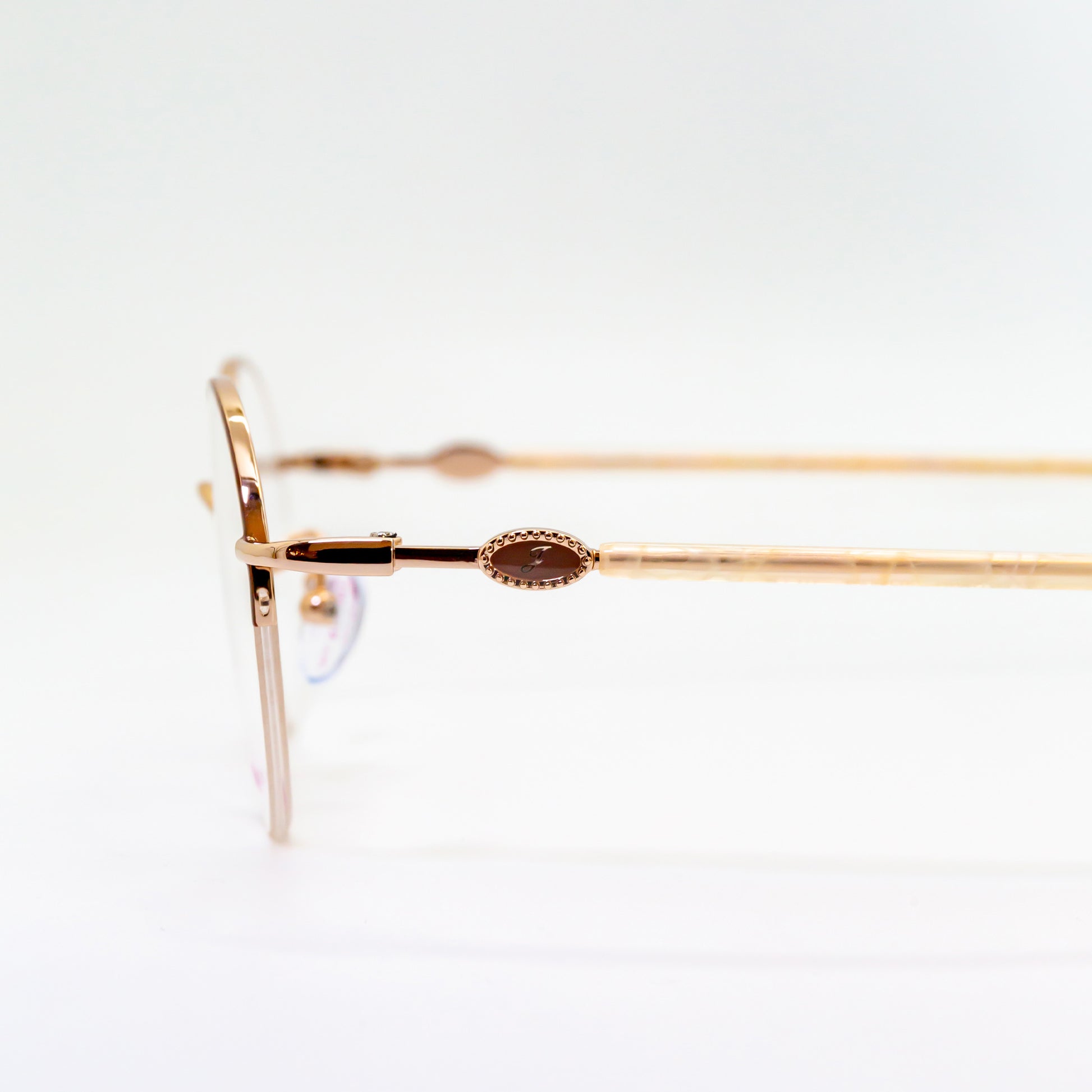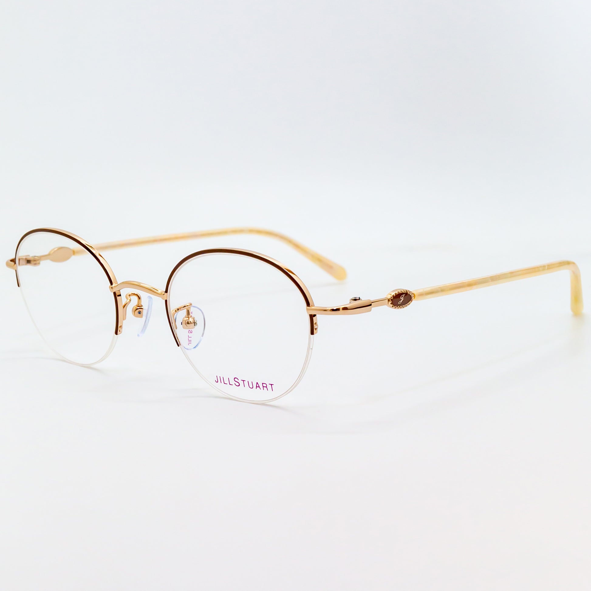 ブリッジが特徴的なハーフリムタイプで、シンプルなデザインの中に大人っぽさを。