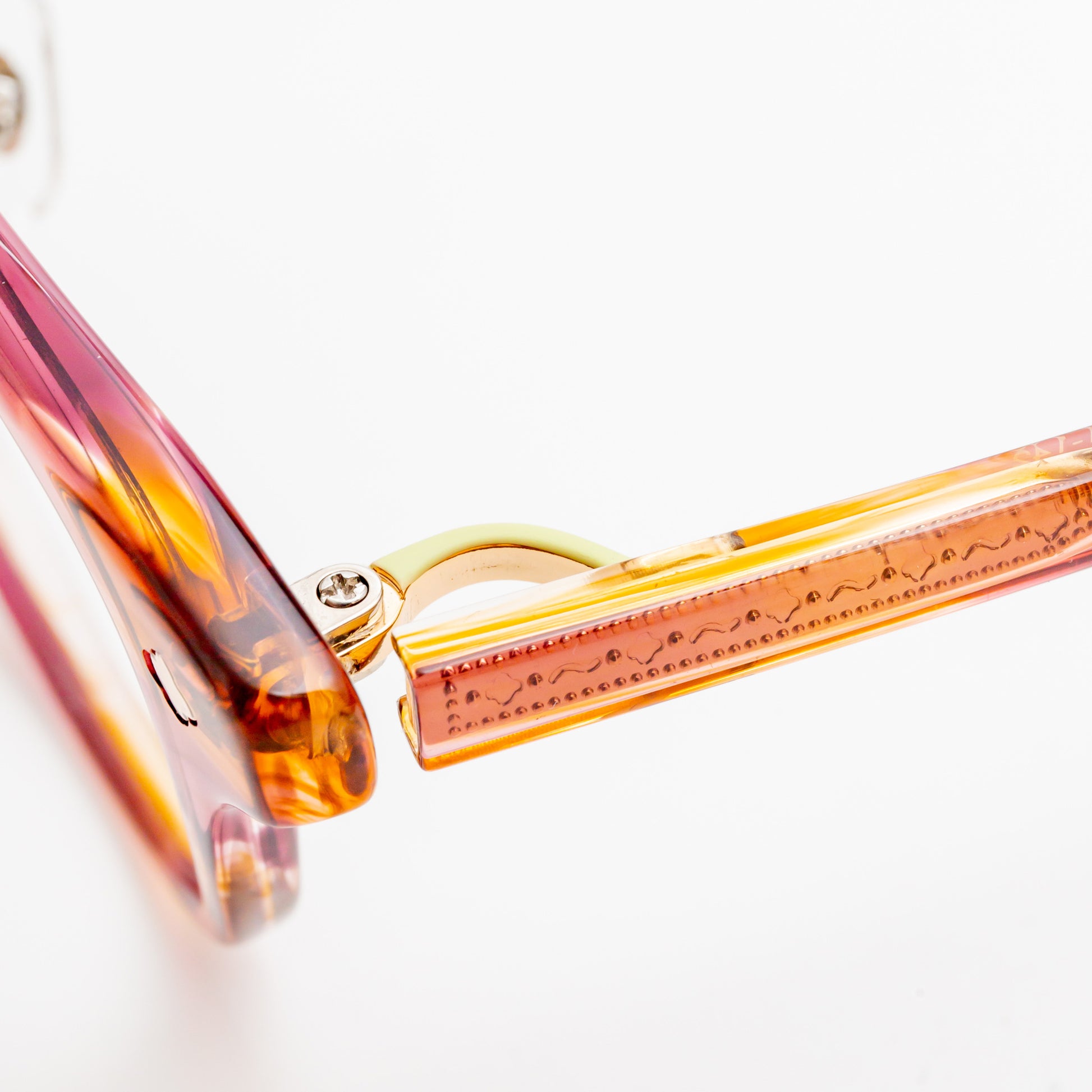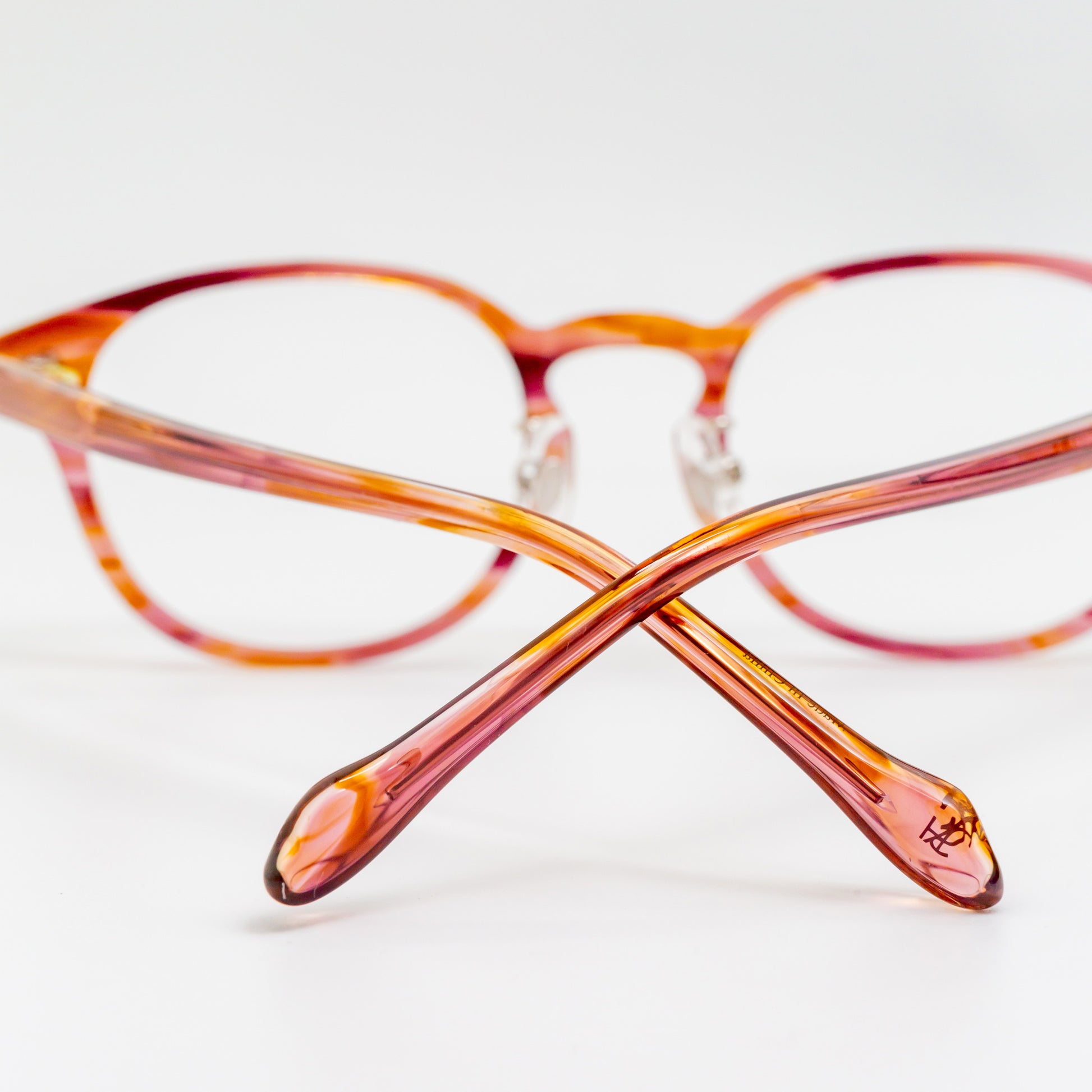 伏し目や上目づかいの時に丁番の七宝がアクセントになる、あざとかわいい メガネです。うつむくと見えるあざとかわいいカラフルな七宝が特徴です!