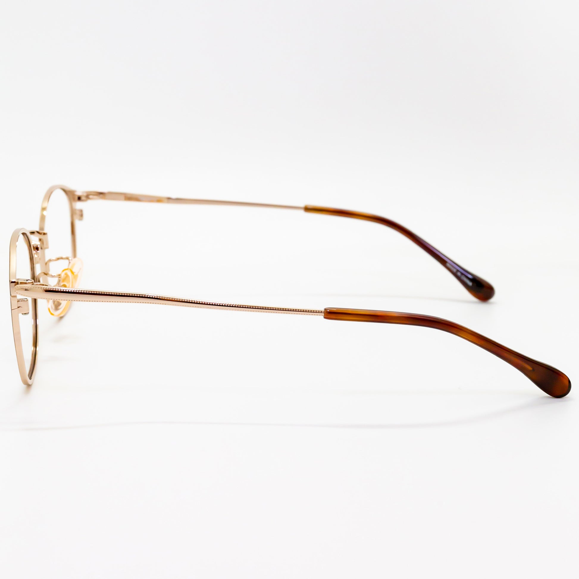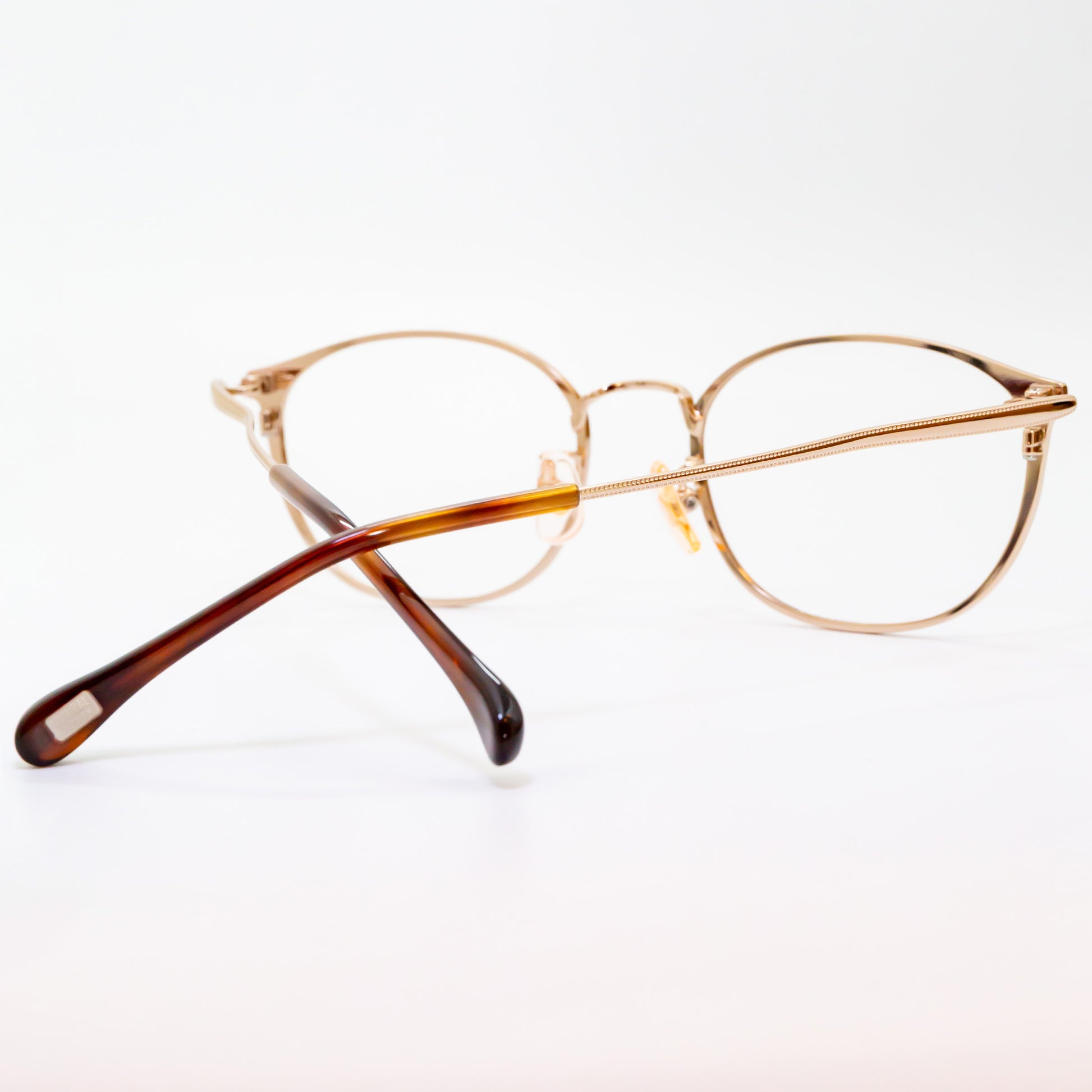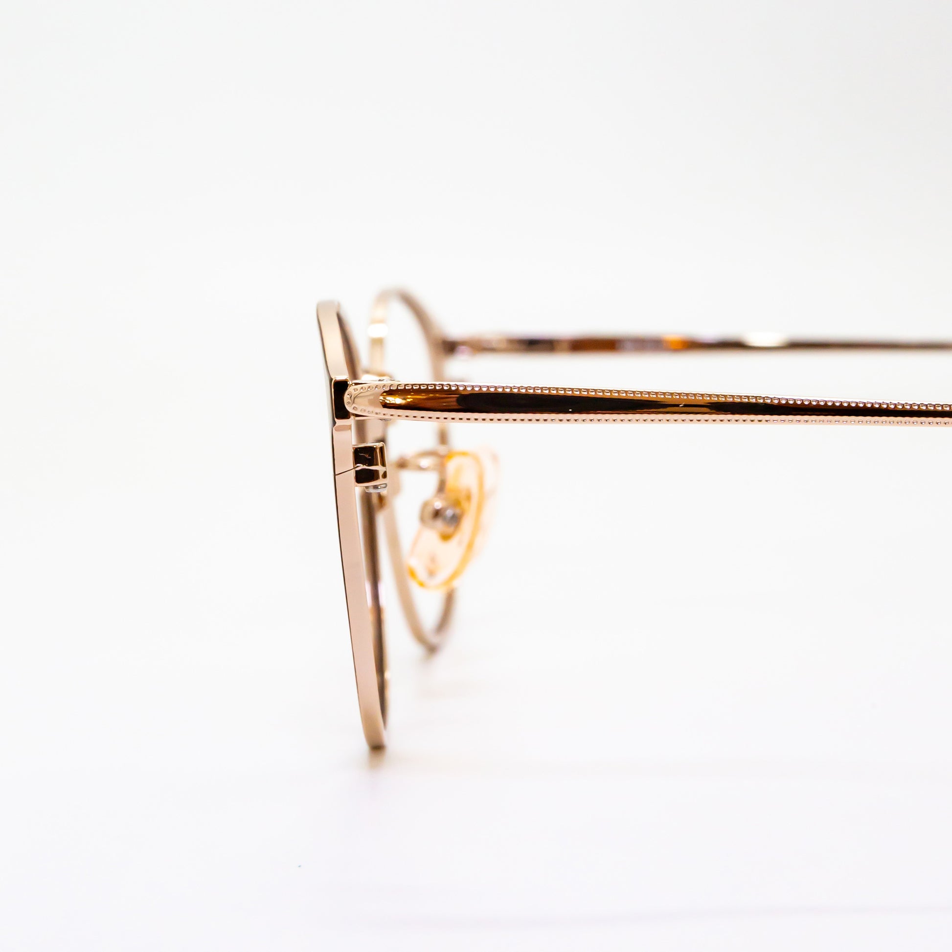ジョイント部分のコロンとしたリング状のパーツとクッションテンプルが繋がり、掛けた時の負担を軽減しています。