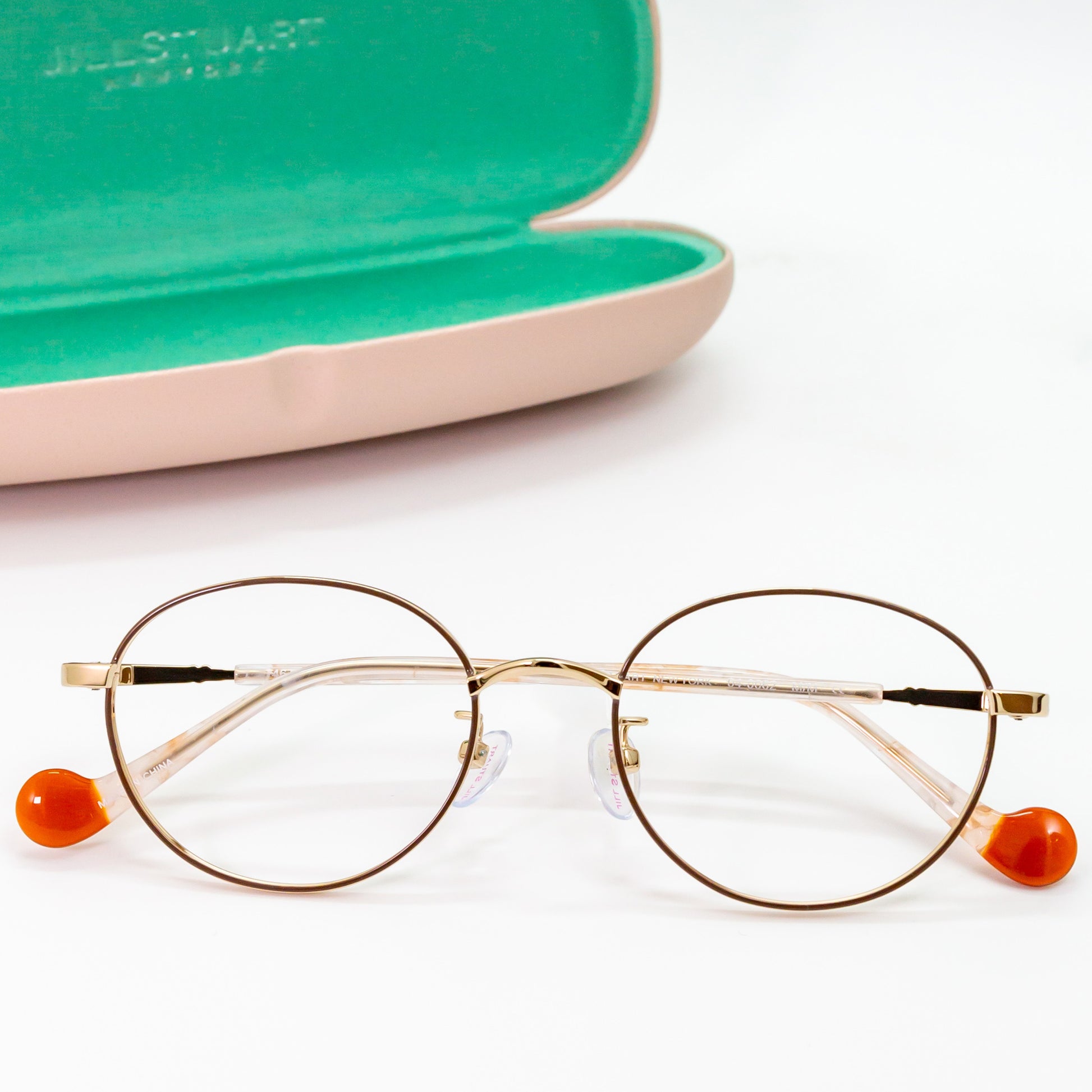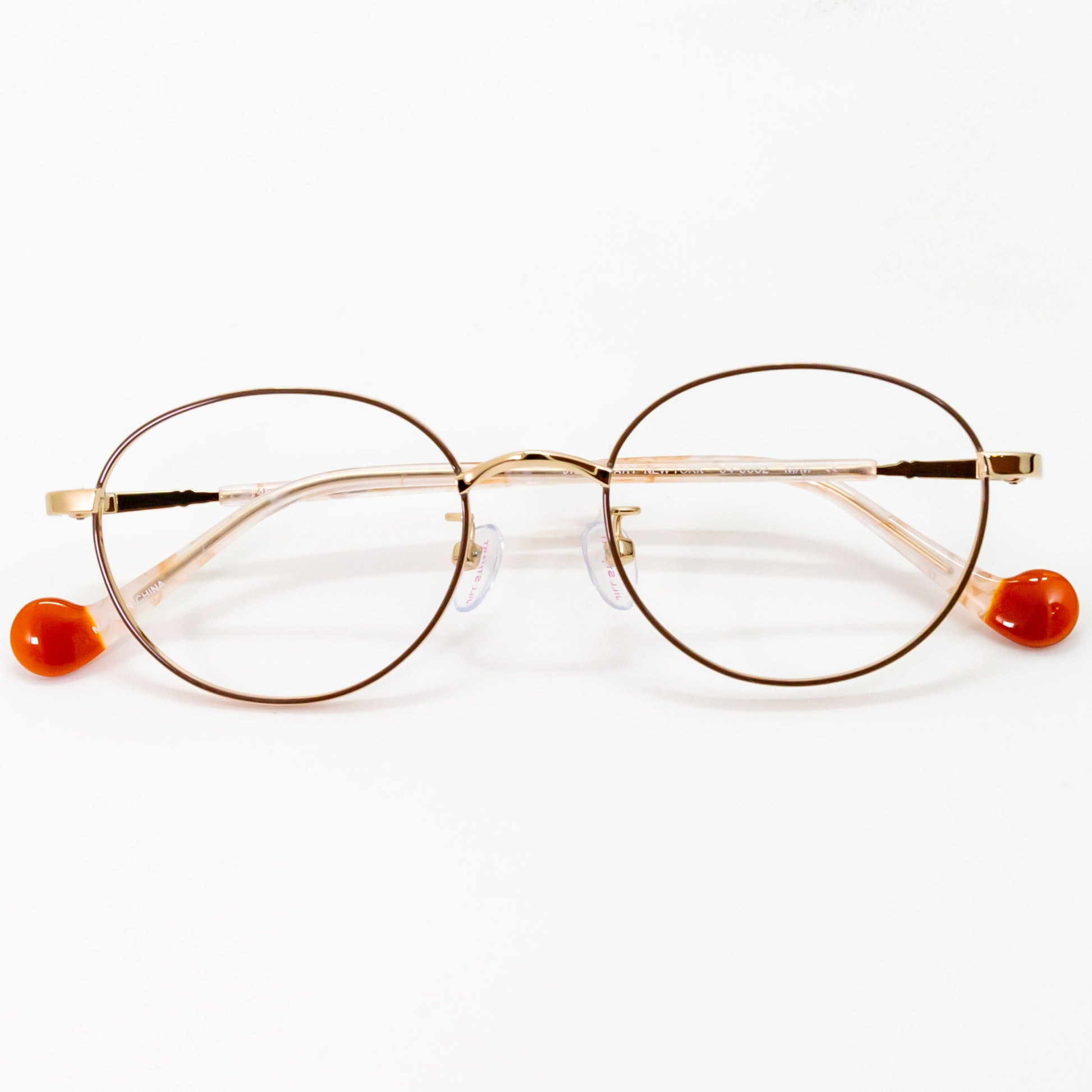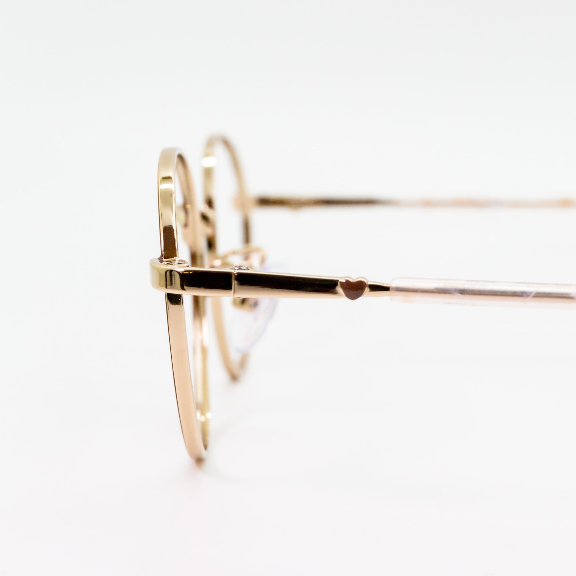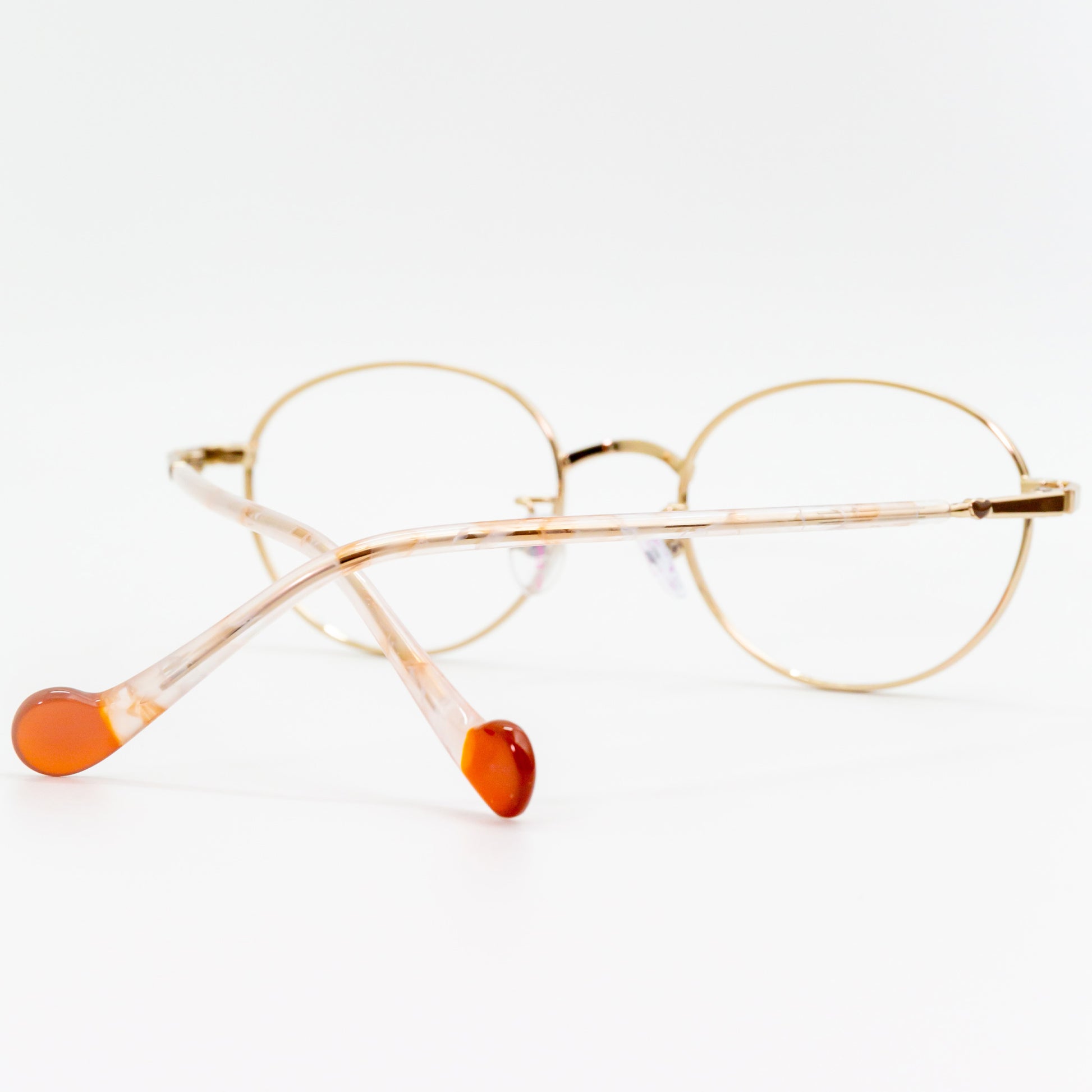 掛けやすいボスリントンシェイプ。テンプルには小さなハートがさりげなくあしらわれ、女の子の心をくすぐるデザインです。