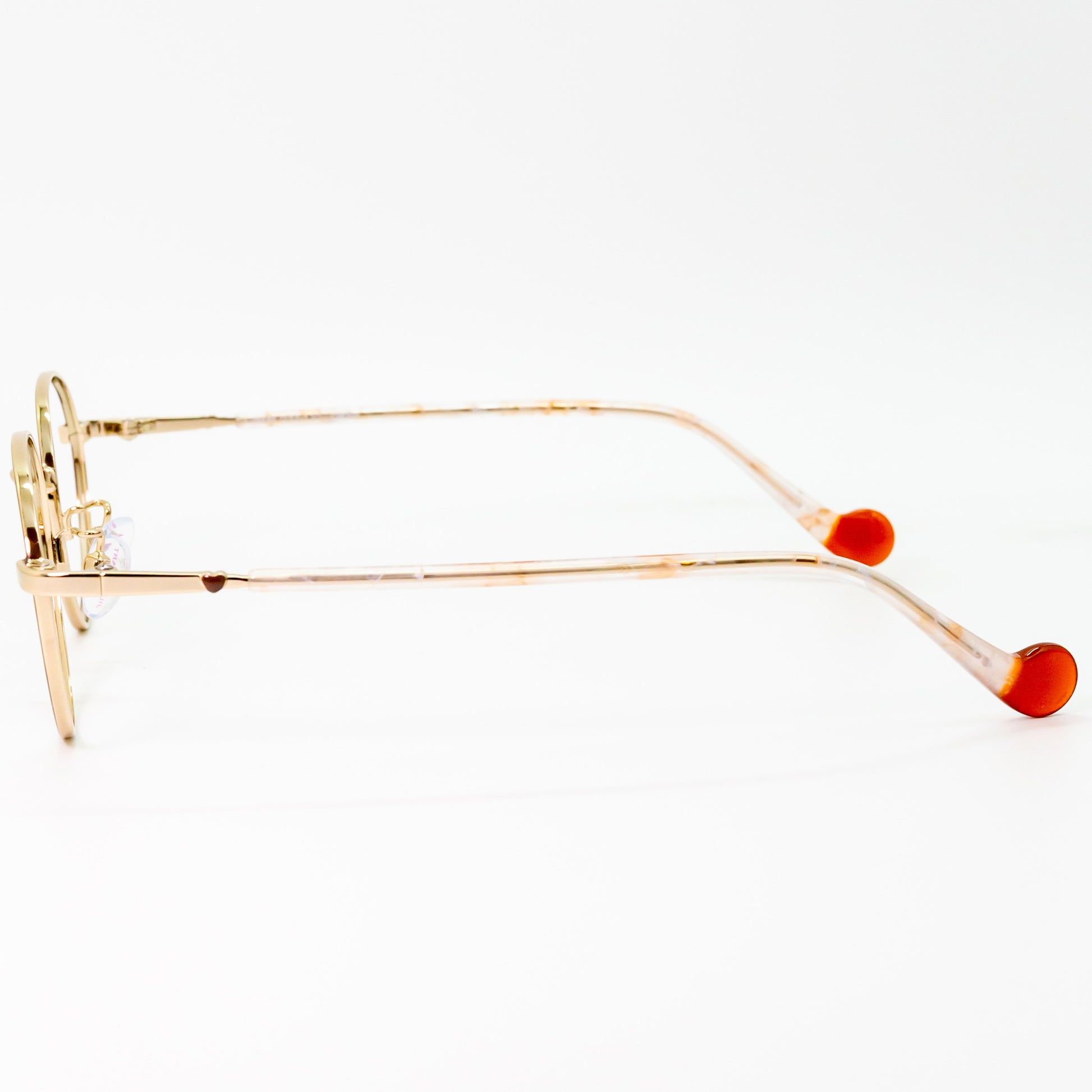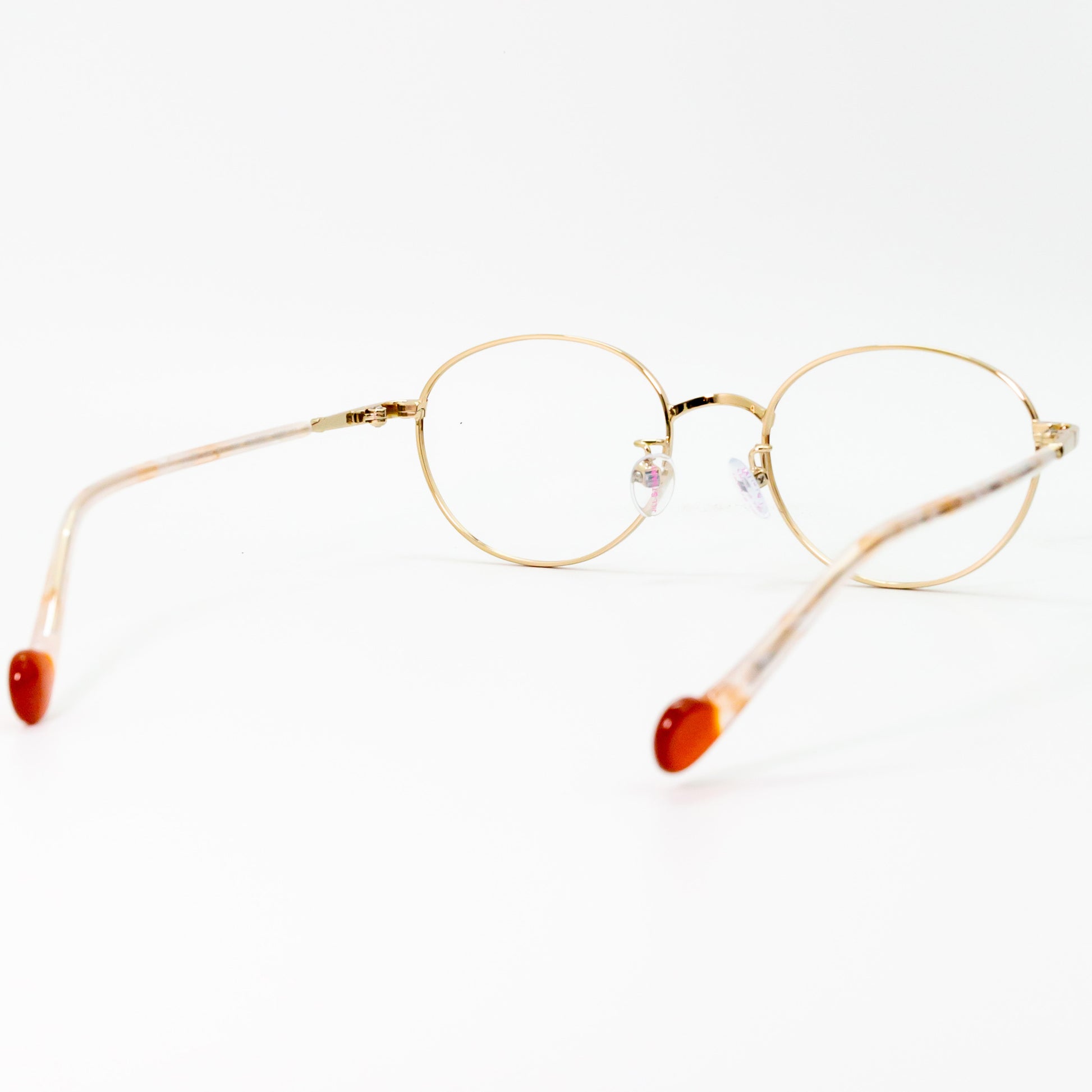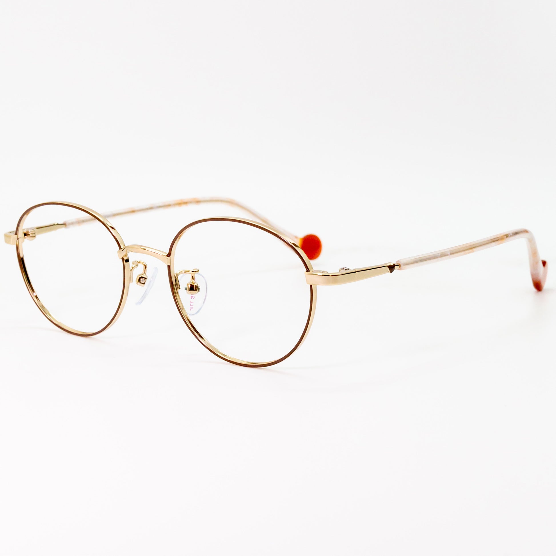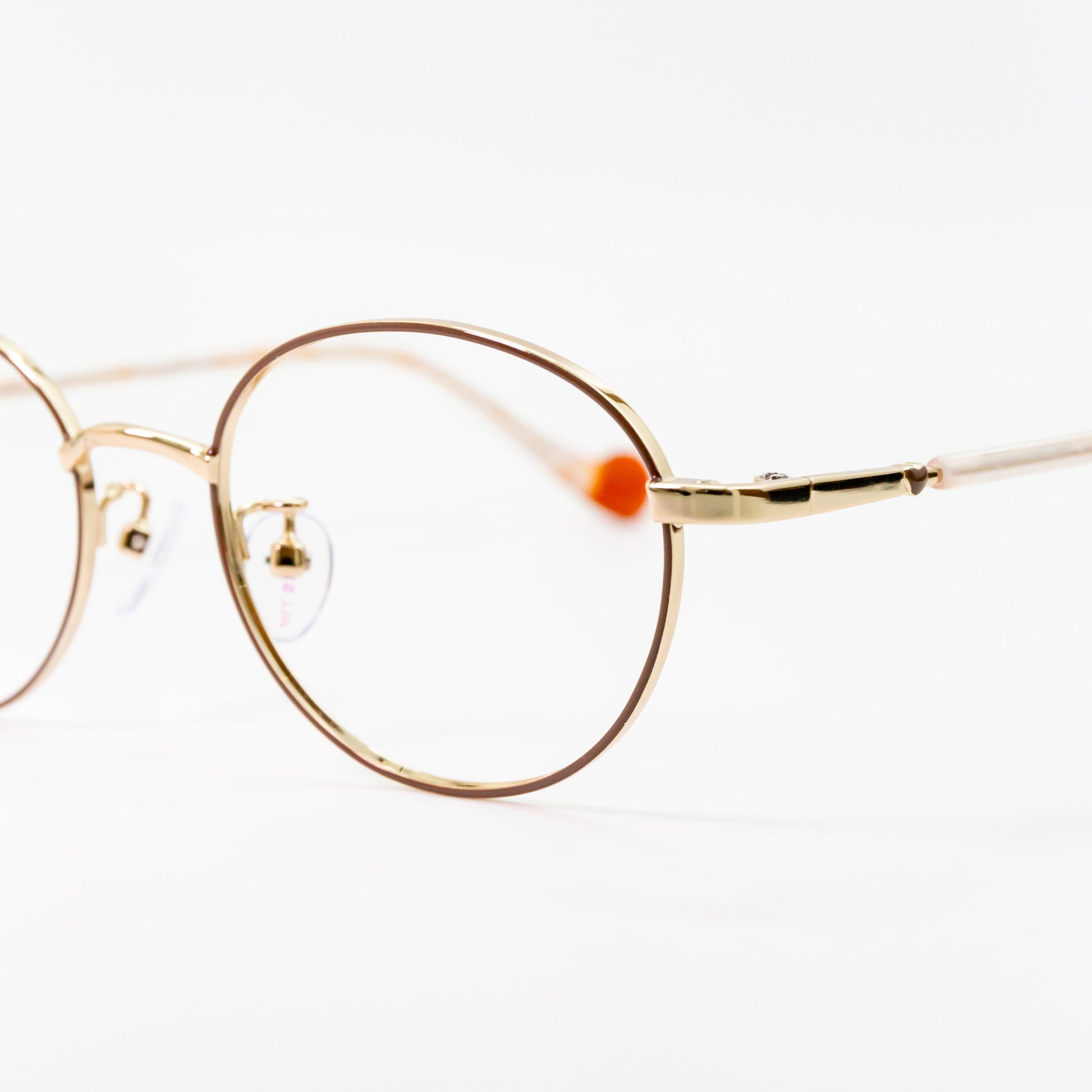 掛けやすいボスリントンシェイプ。テンプルには小さなハートがさりげなくあしらわれ、女の子の心をくすぐるデザインです。