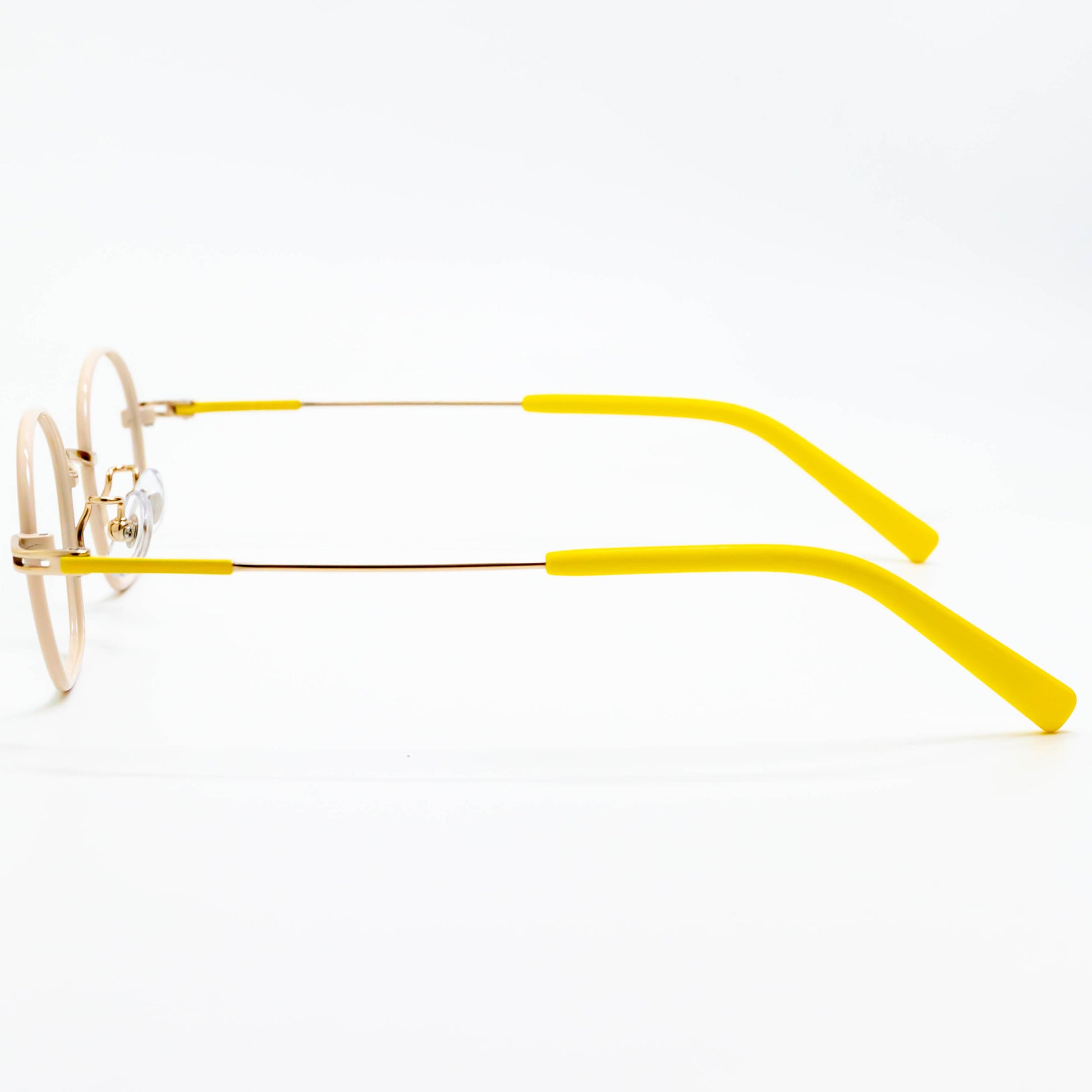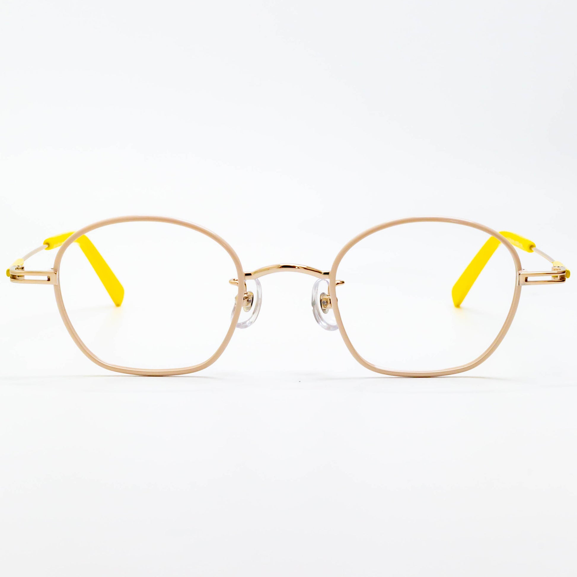 小さめのレンズサイズで、お顔の輪郭が入り込まずすっきりかけることができ、リムに厚みがあるため、フレームからレンズがはみ出しません。