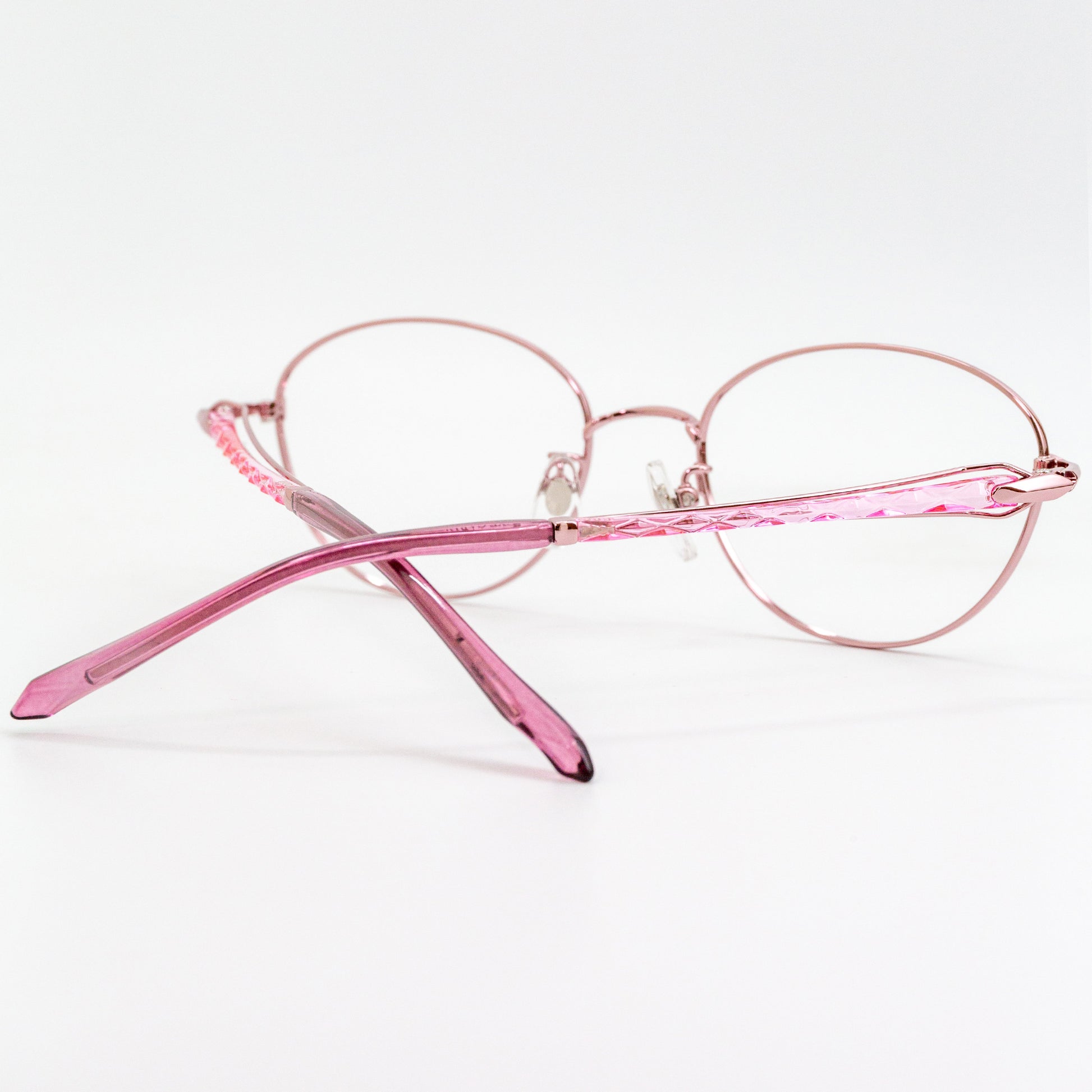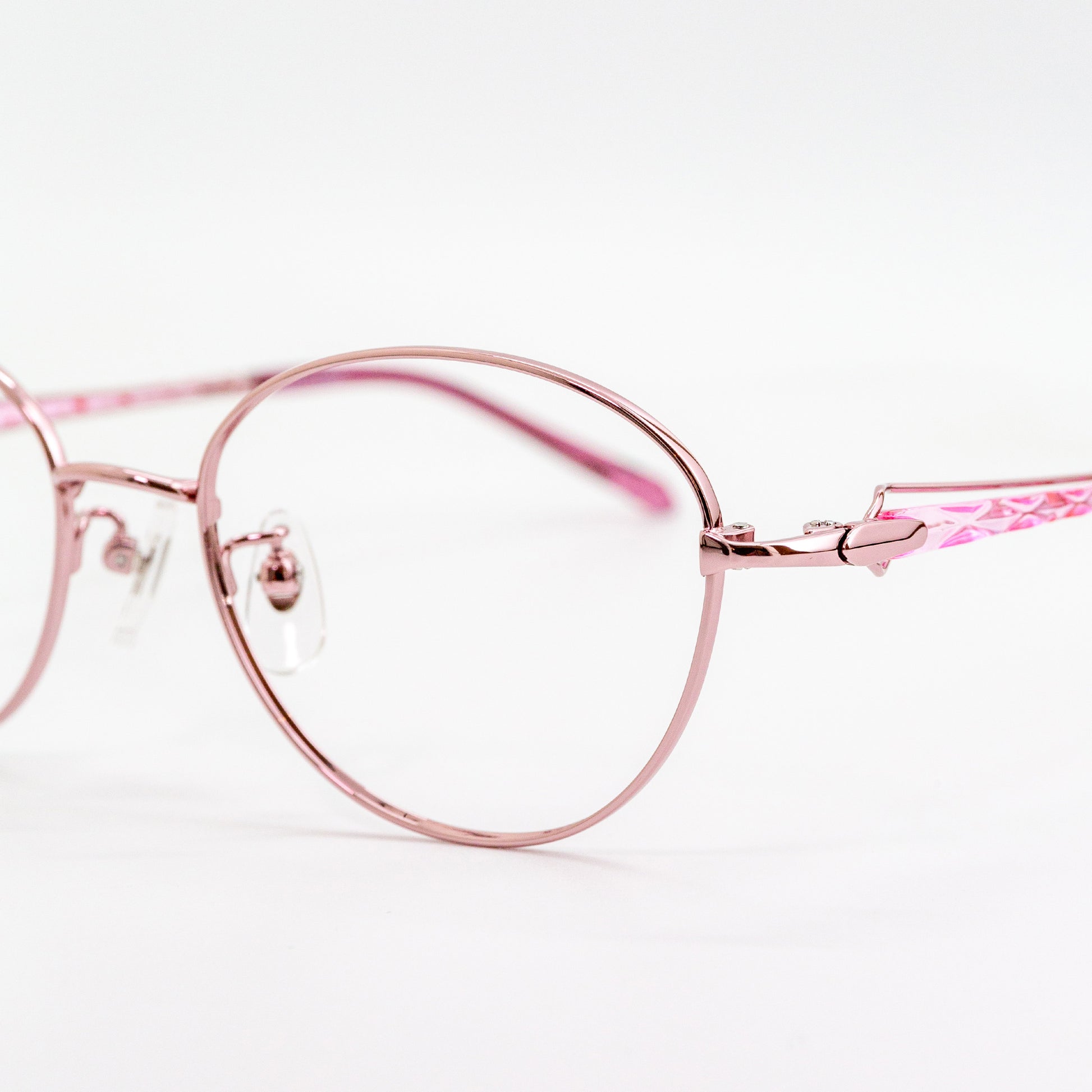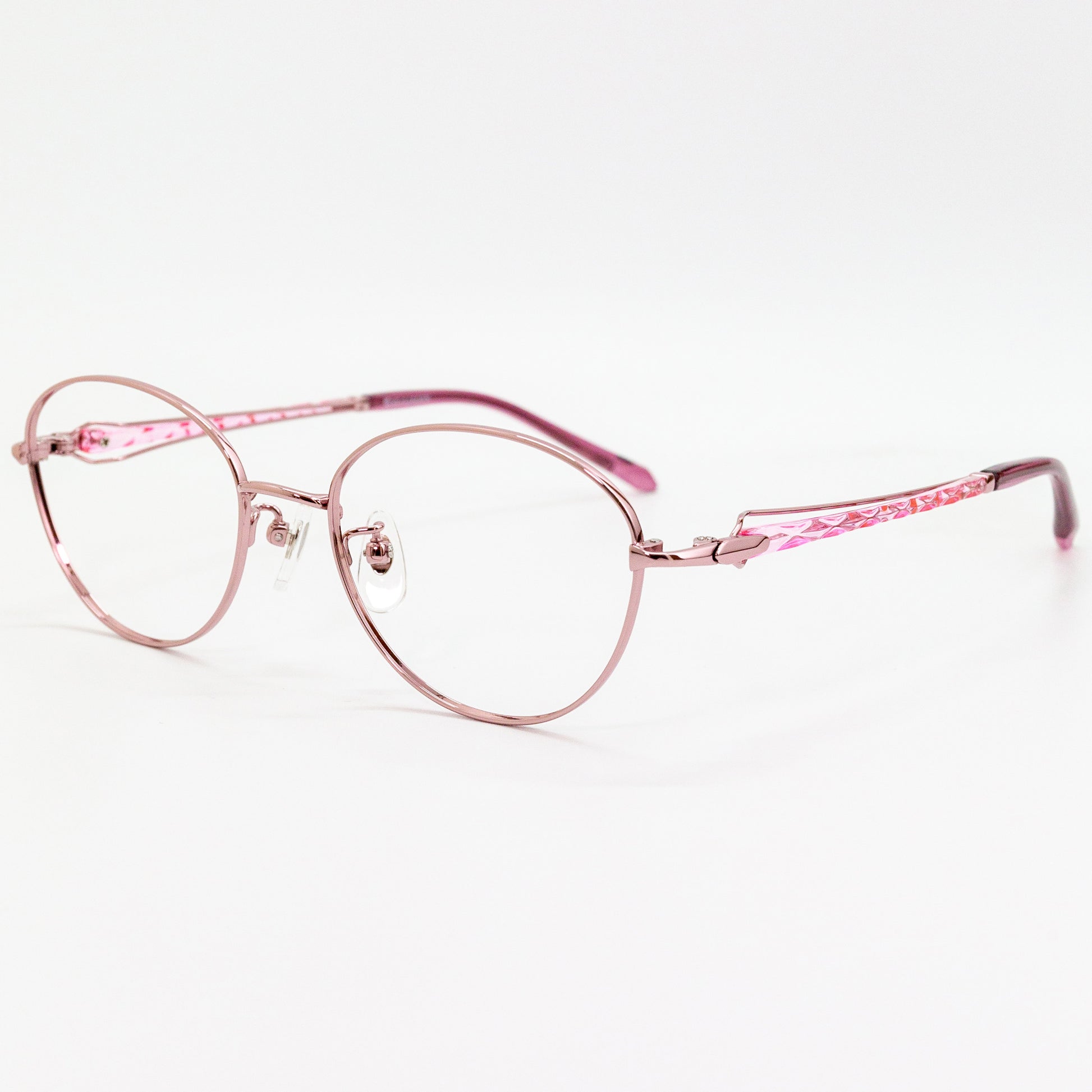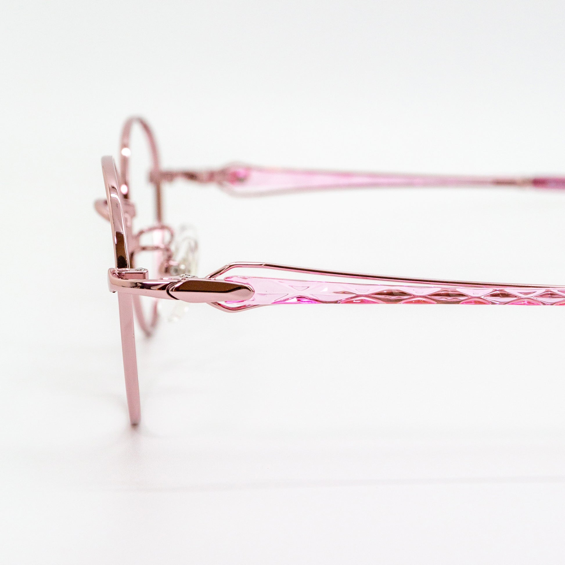 メタルのく光沢感>と脂素材のく透明感>を最大限に活かし、『香水瓶』をモチーフにしたテンプルデザインです。光が透過することでお肌を明るく魅せ、艶やかで華やかなカラーがお肌を彩ります。
