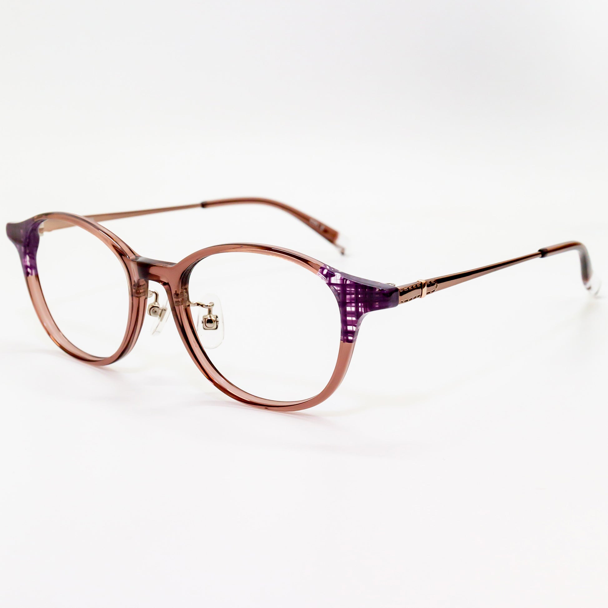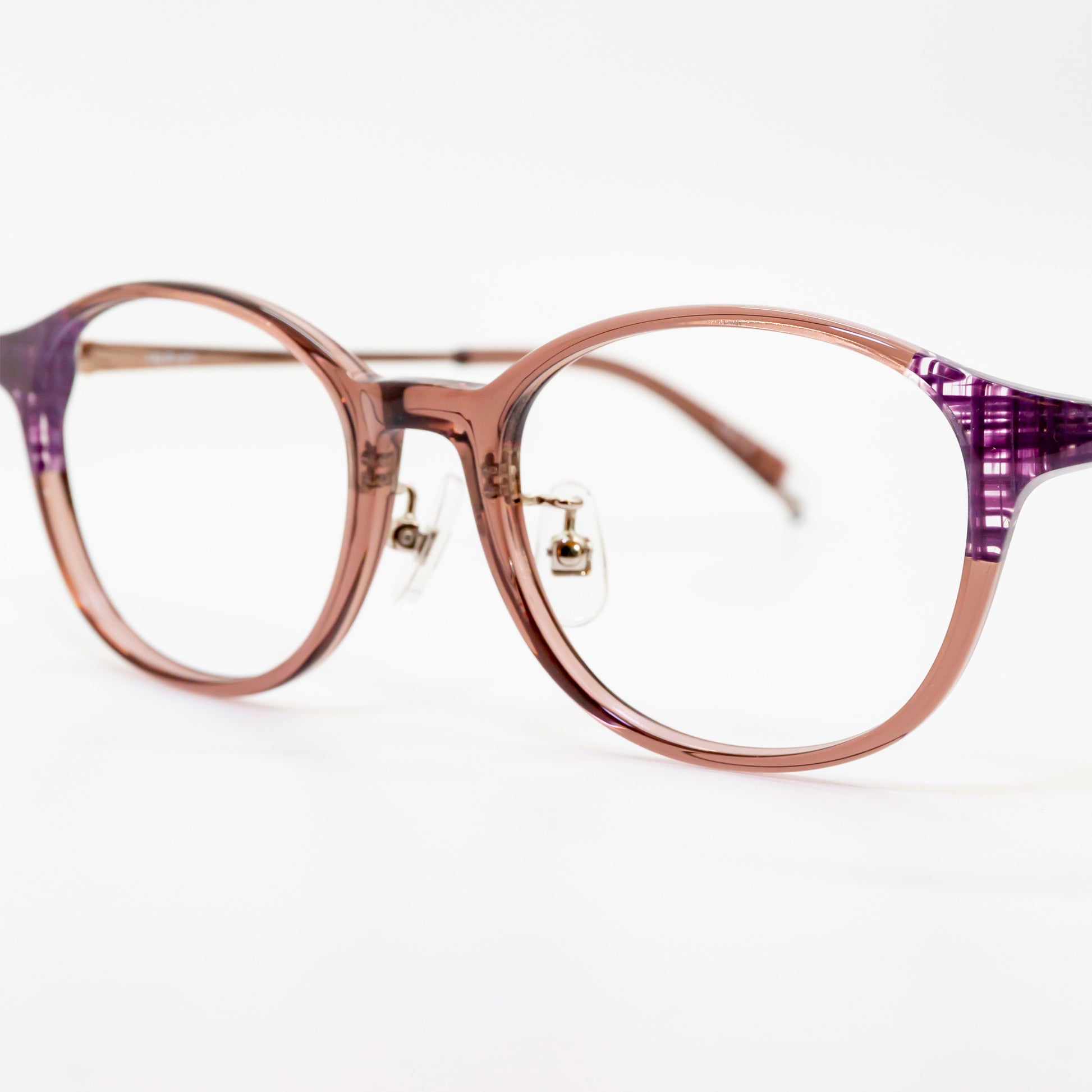 やさしいピンクブラウンにパープルチェックのアクセントが加わり、程よく華やかな印象に。
