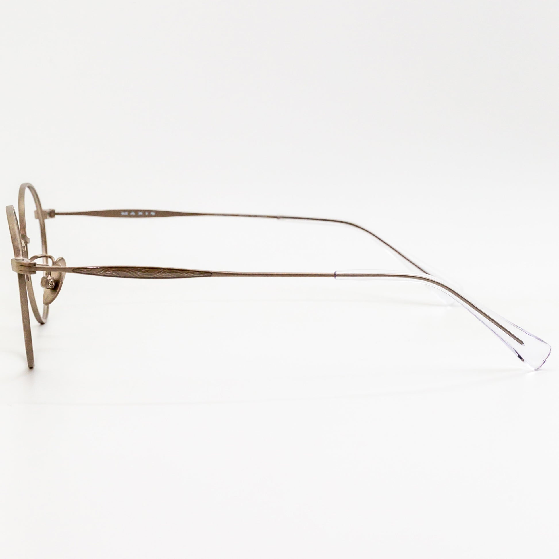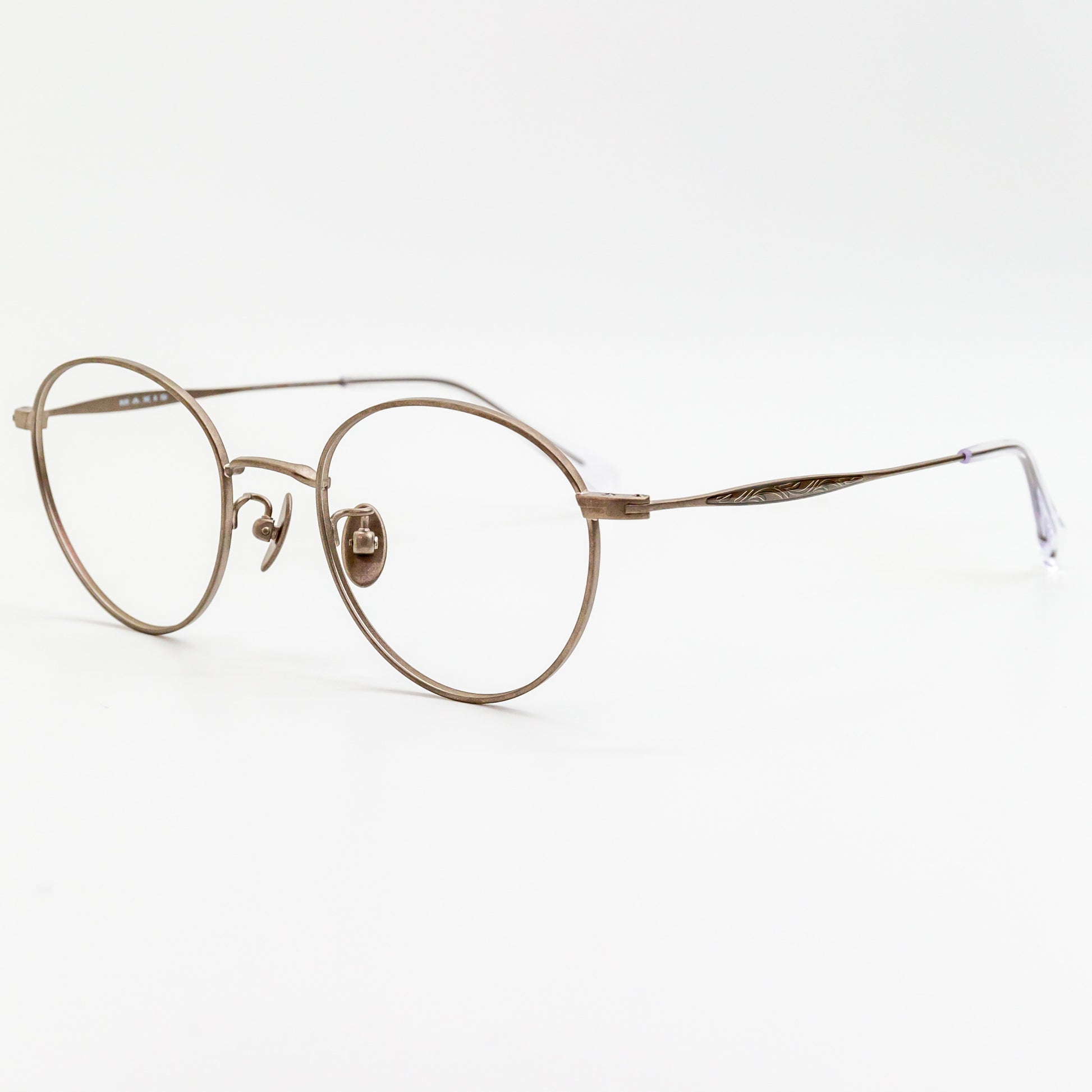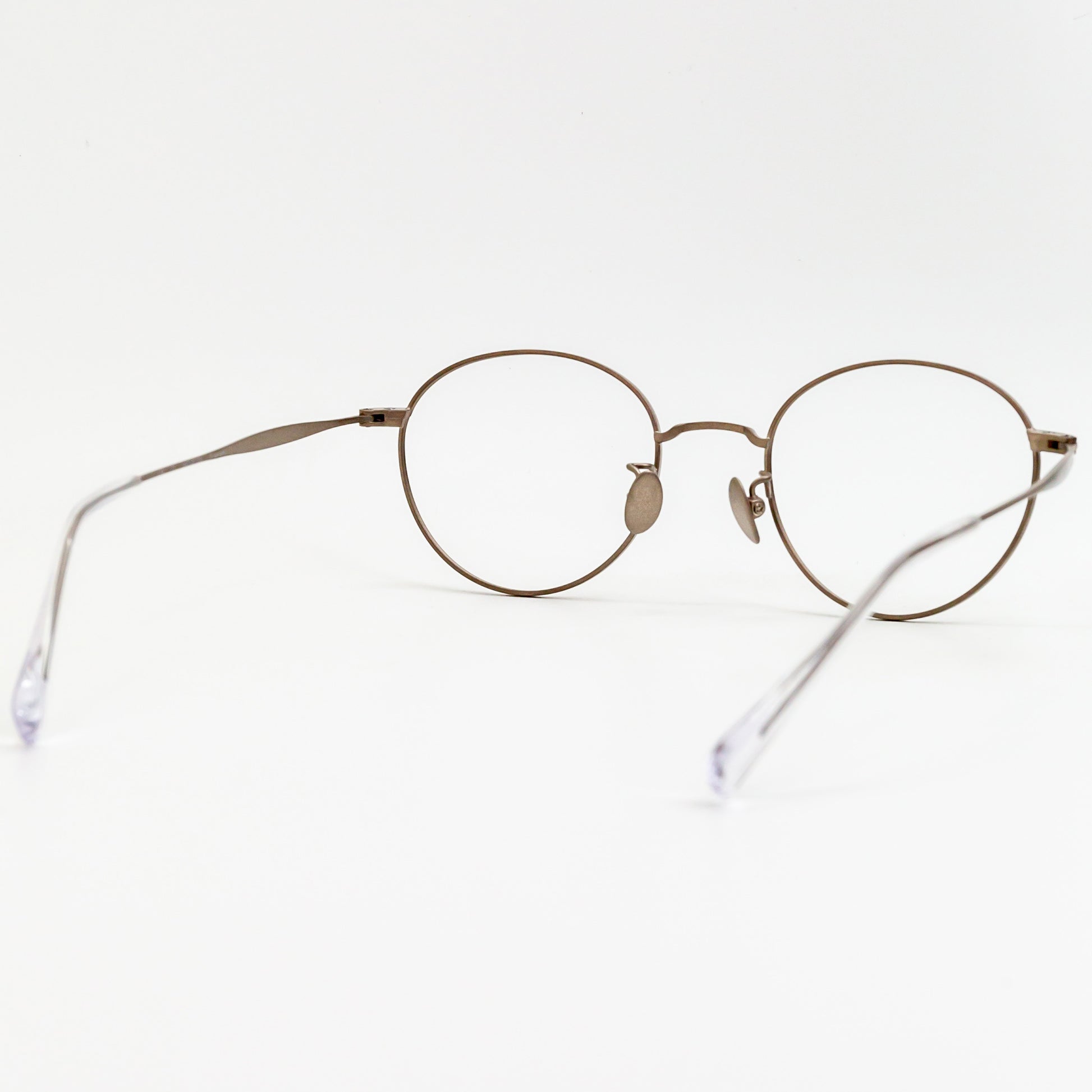 フレームはあえてメッキはつけずに、素材の魅力を感じるサスティナブルなチタン無垢仕上げにしました。七宝で覆われ、奥深い表情をみせるテンプル彫金模様です。