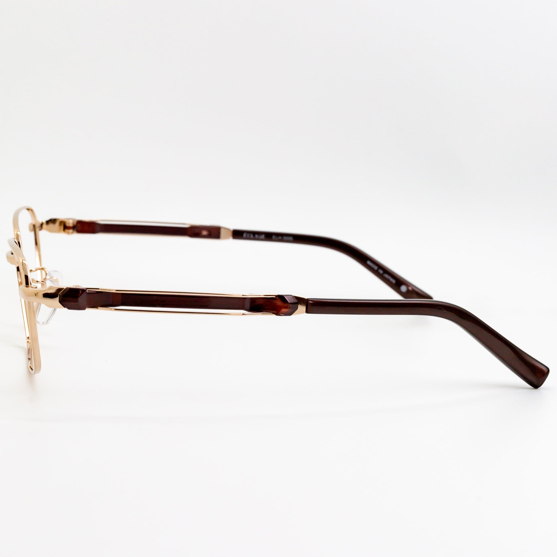 「ECLAGE(エクラージュ)」は、フランス語でEclat(輝き)とMariage(調和した状態)を組み合わせた造語で、テンプルにβチタンとスーパーエンジニアプラスチック材であるポリフェニルサルフォンを使用し、二つの素材が調和することでさらなる輝きとよりよいかけ心地を追求したフレームとなっています。