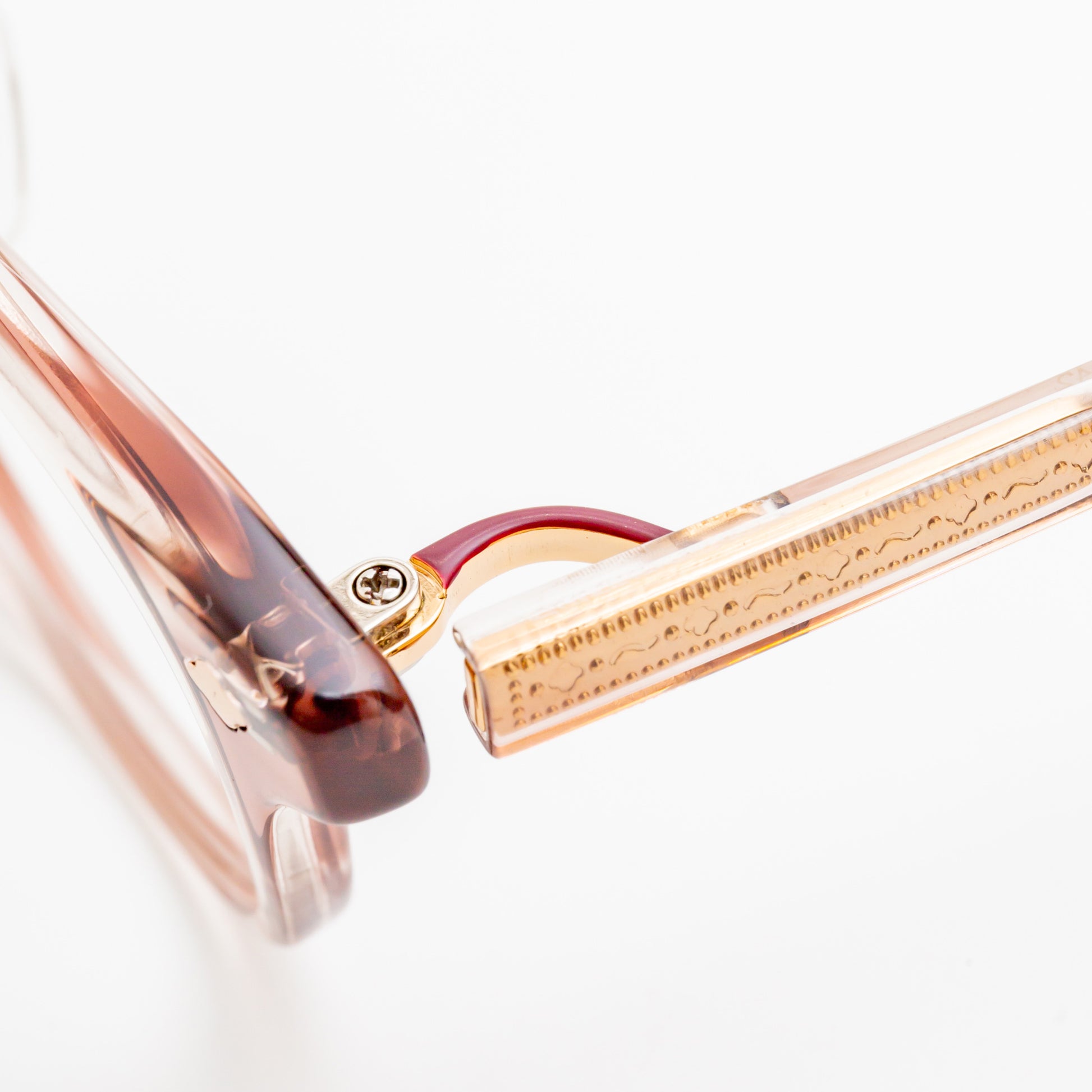 伏し目や上目づかいの時に丁番の七宝がアクセントになる、あざとかわいい メガネです。うつむくと見えるあざとかわいいカラフルな七宝が特徴です!